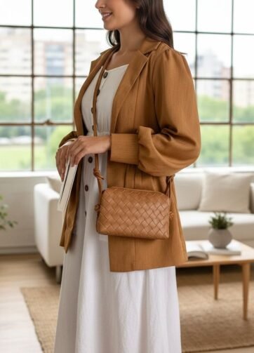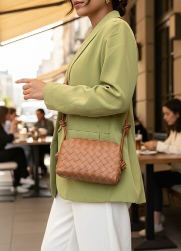 AMB-02BR DENTI IN BROWN LUXURY WOVEN SLING CROSS BODY BAG