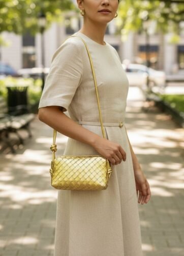 AMB-02GL DENTI IN GOLD LUXURY WOVEN SLING CROSS BODY BAG