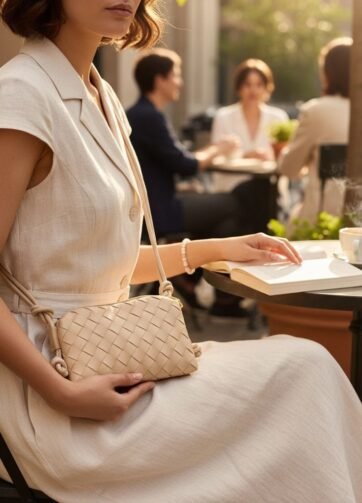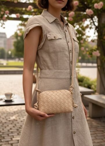 AMB-02CR DENTI IN CREAM LUXURY WOVEN SLING CROSS BODY BAG
