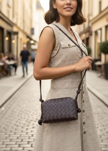 AMB-02DB DENTI IN DARK BROWN LUXURY WOVEN SLING CROSS BODY BAG