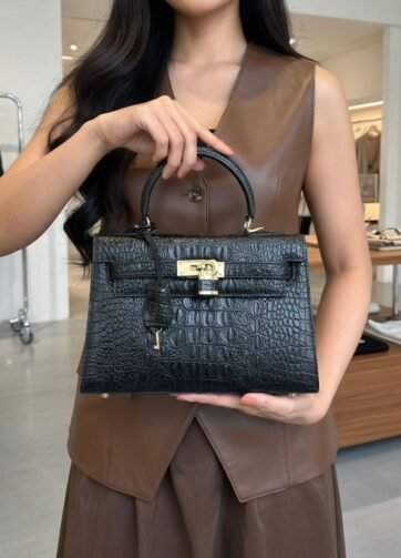 HMZ-02CB XONA IN BLACK CROCO PATTERN HIGH QUALITY LEATHER BAG