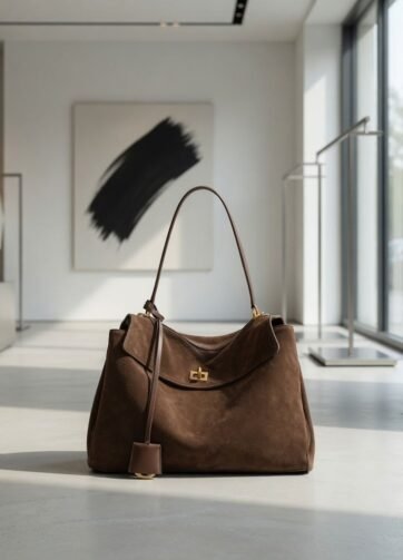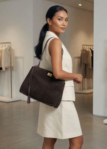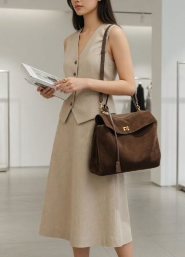 JS-12SDB SUEDE DARK BROWN ROSY HIGH QUALITY LEATHER SHOULDER AND CROSSBODY BAG