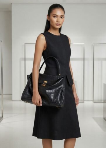 MBL-04BKC BIG ZARYA BLACK CROCO HIGH QUALITY LEATHER SHOULDER AND CROSSBODY BAG