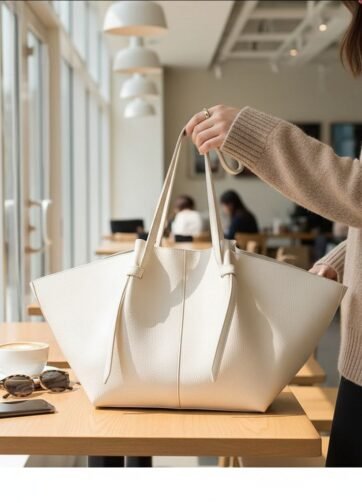 PSJ-07WB VELICE WHITE BEIGE HIGH QUALITY LEATHER SHOULDER AND TOTE BAG