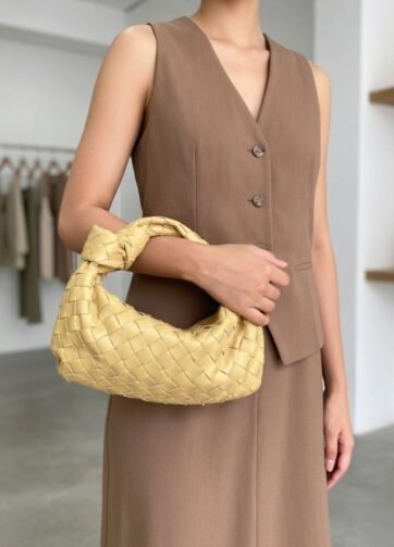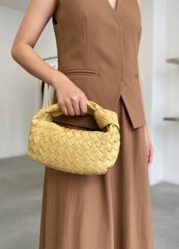 THB-05YL YELLOW ALFA HIGH QUALITY LEATHER WOVEN MINI DESIGNER HANDBAG