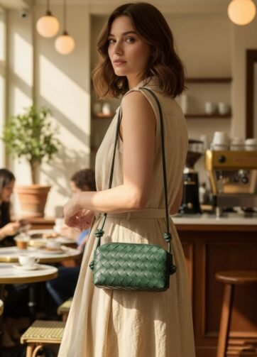 AMB-02GR DENTI IN GREEN LUXURY WOVEN SLING CROSS BODY BAG