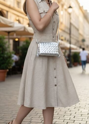 AMB-02SV DENTI IN SILVER LUXURY WOVEN SLING CROSS BODY BAG