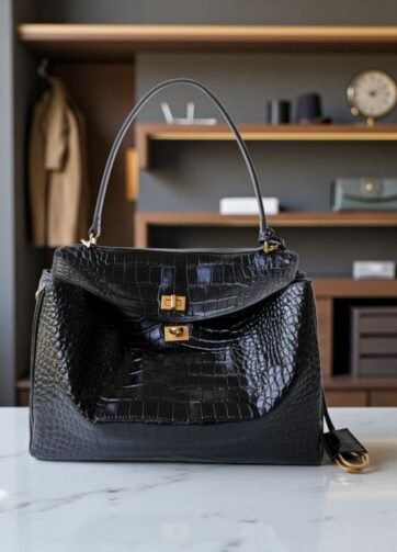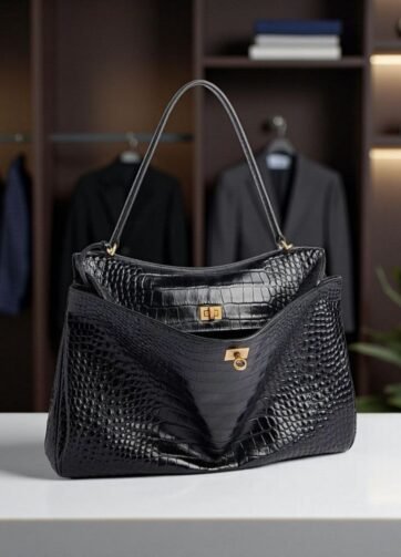 JS-10BC BLACK CROCO ZARYA ELEGANT LUXURY TOTE SHOULDER AND CROSSBODY BAG