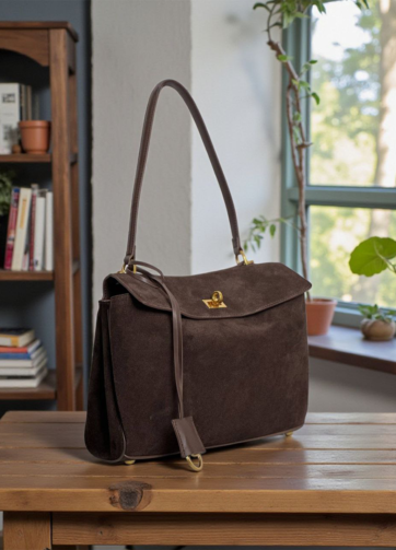 JS-10SDB SUEDE DARK BROWN ZARYA HIGH QUALITY LEATHER SHOULDER AND CROSSBODY BAG