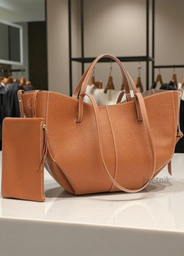 MPL-01BR SOTI BROWN COLOR HIGH QUALITY GRAINED LEATHER TOTE BAG