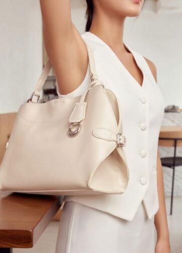 PSJ-07WB VELICE WHITE BEIGE HIGH QUALITY LEATHER SHOULDER AND TOTE BAG