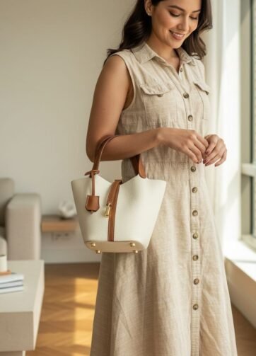 MBL-04WB BIG ZARYA WHITE BEIGE HIGH QUALITY LEATHER SHOULDER AND CROSSBODY BAG