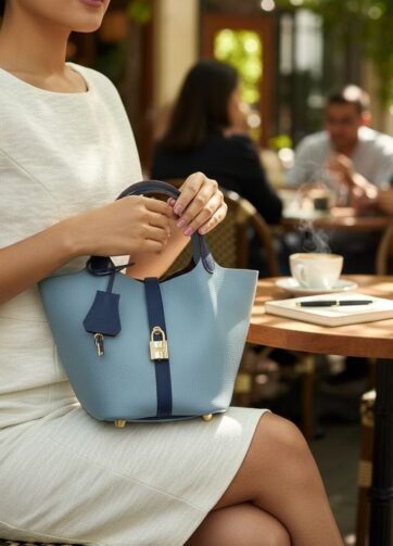 MCB-01BBB PICO BROWN MIX BABY BLUE MINI HIGH QUALITY LEATHER HAND BAG