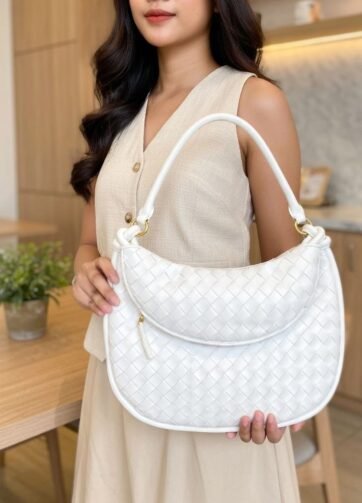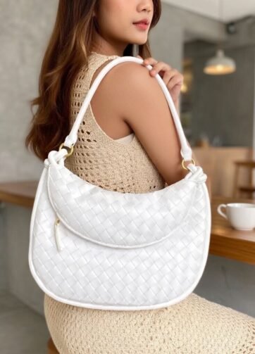 THB-04WT BLORA IN WHITE LUXURY WOVEN SHOULDER BAG