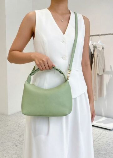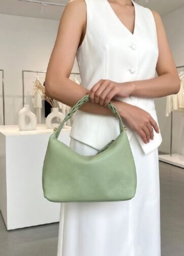 THB-04LG LIGHT GREEN HAJEL HIGH QUALITY LEATHER WOVEN SHOULDER BAG