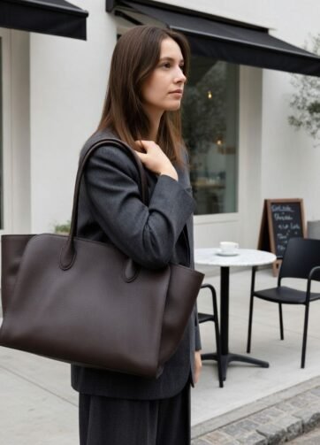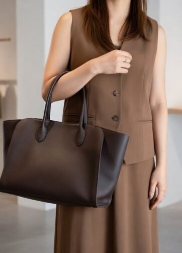 TRS-02DB CLANDRA DARK BROWN HIGH QUALITY LEATHER TOTE BAG