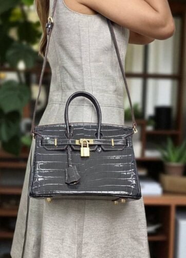 ERD-06BK ZORA IN BLACK CROCO LUXURY TOTE BAG