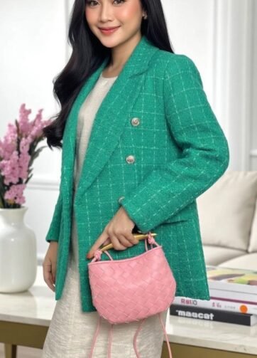 THB-05SG SAGE GREEN ALFA HIGH QUALITY LEATHER WOVEN MINI DESIGNER HANDBAG