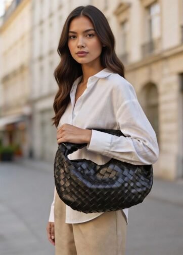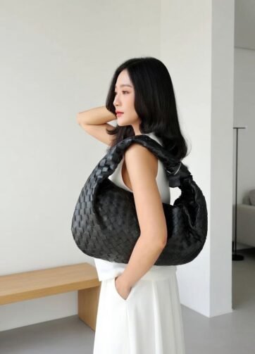 THB-10BK BLACK VOLVA HIGH QUALITY LEATHER WOVEN DESIGNER HANDBAG