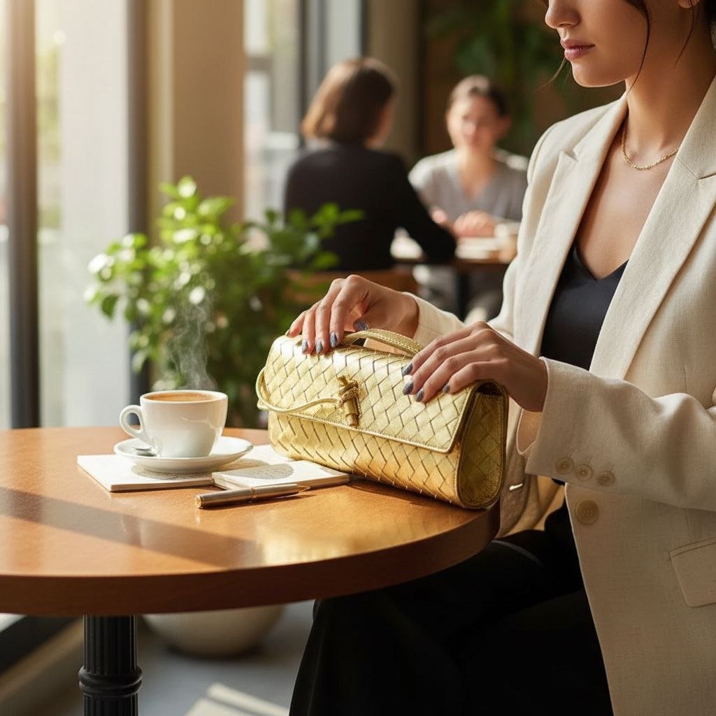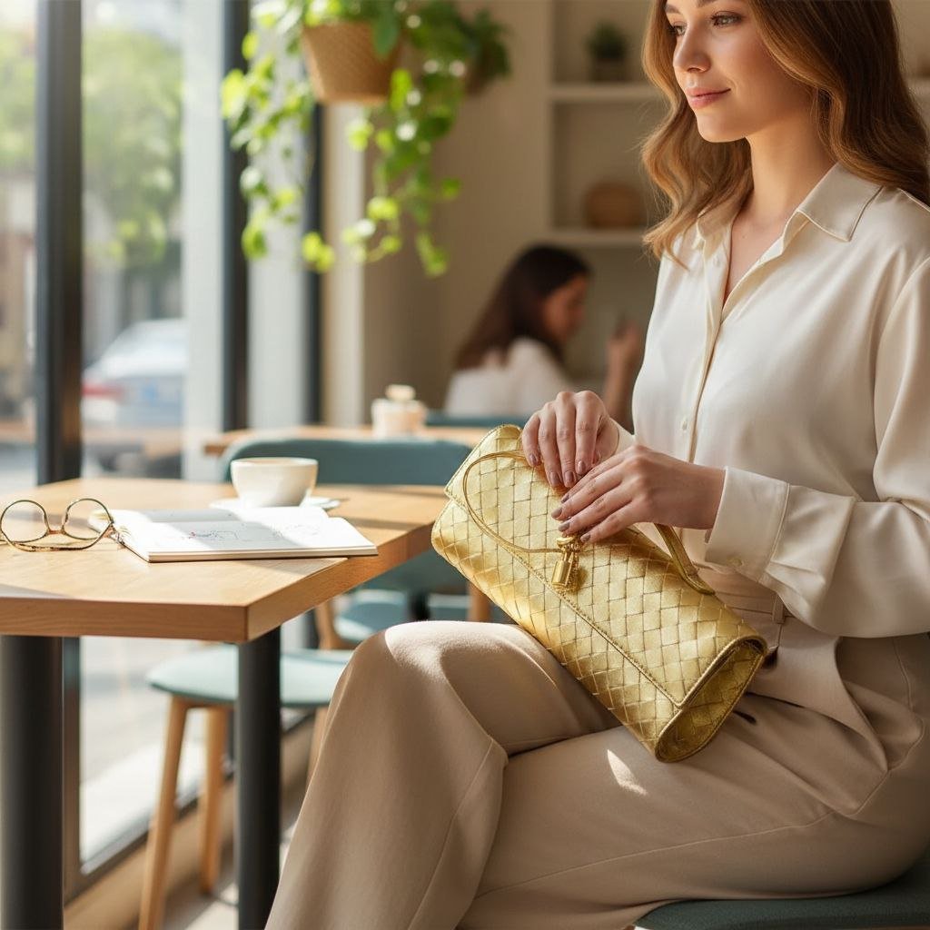 AMB-02GL GOLD PANAMA LUXURY WOVEN BAG (NO STRAP)
