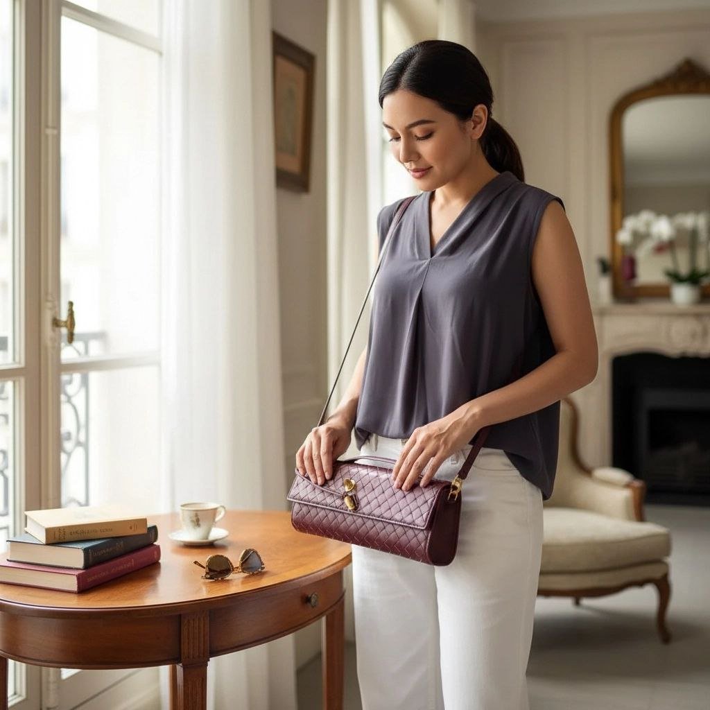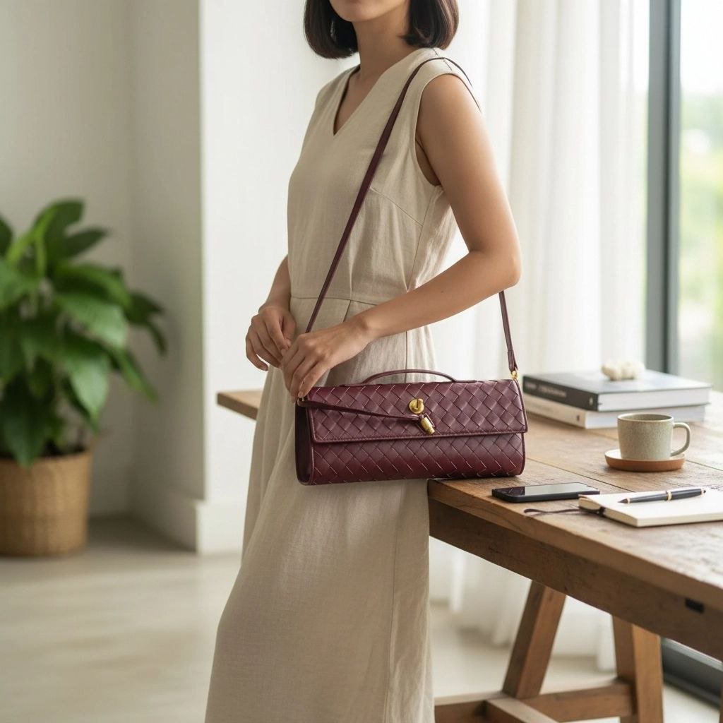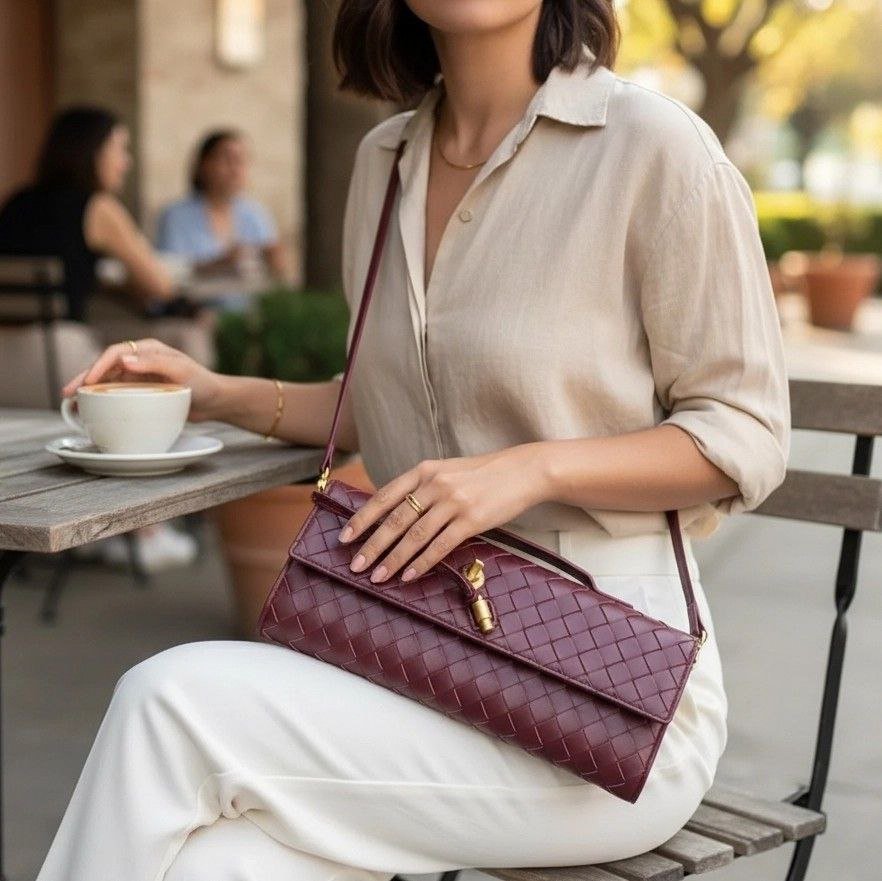 AMB-02MR MAROON PANAMA HIGH QUALITY LEATHER WOVEN SLING CROSS BODY BAG