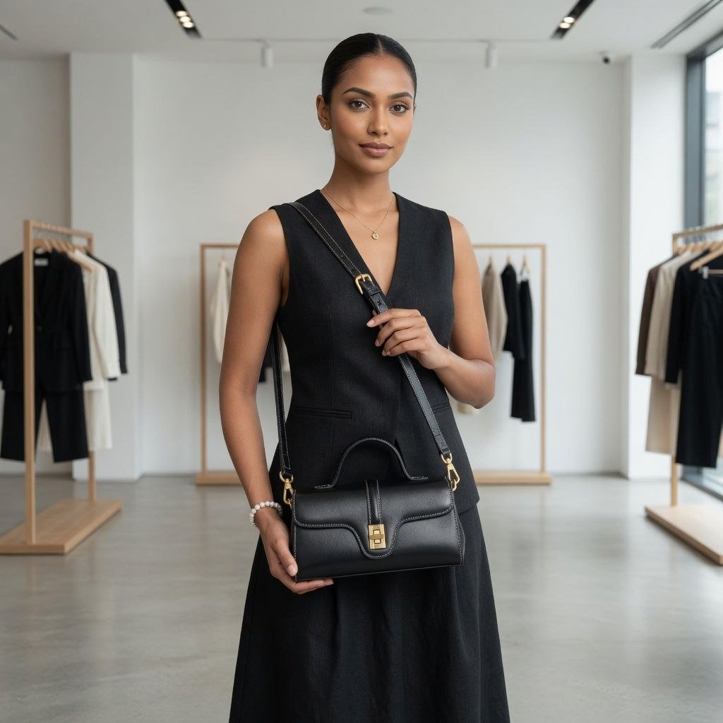 BBS-17BK BLACK HARSA HIGH QUALITY LEATHER SHOULDER AND CROSSBODY BAG