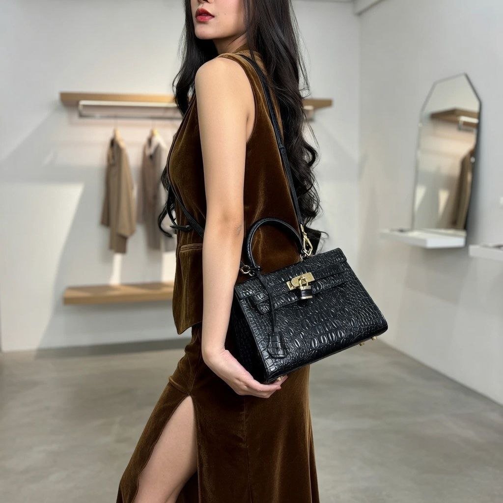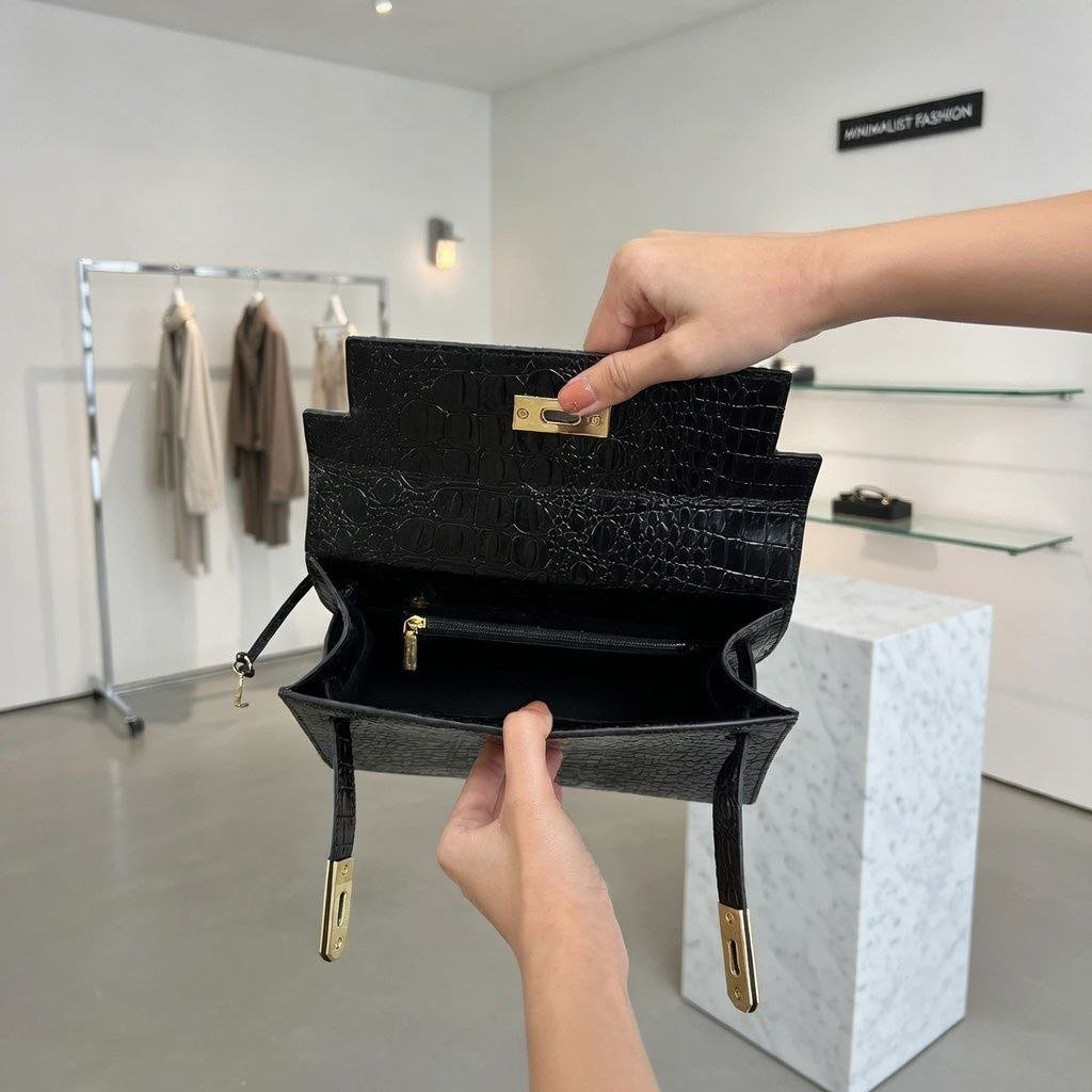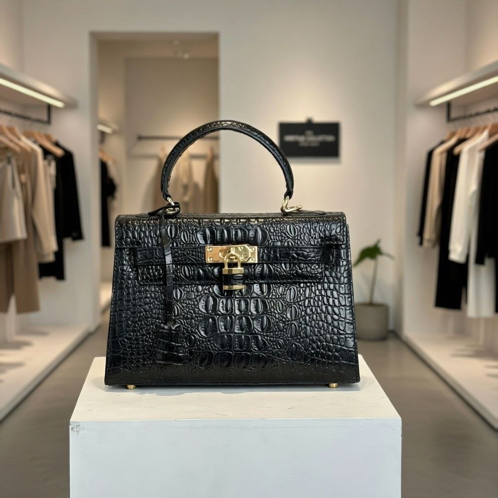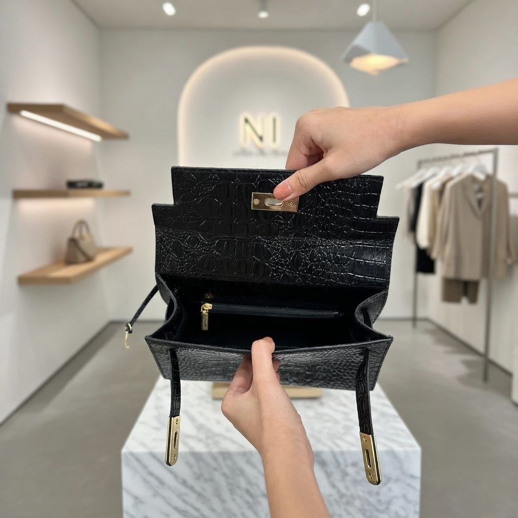HMZ-02CB XONA IN BLACK CROCO PATTERN HIGH QUALITY LEATHER BAG