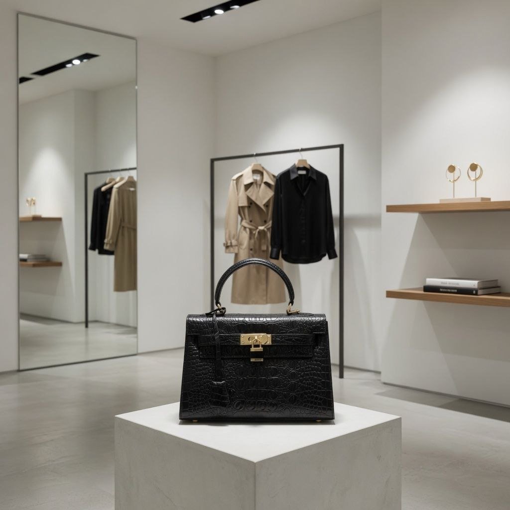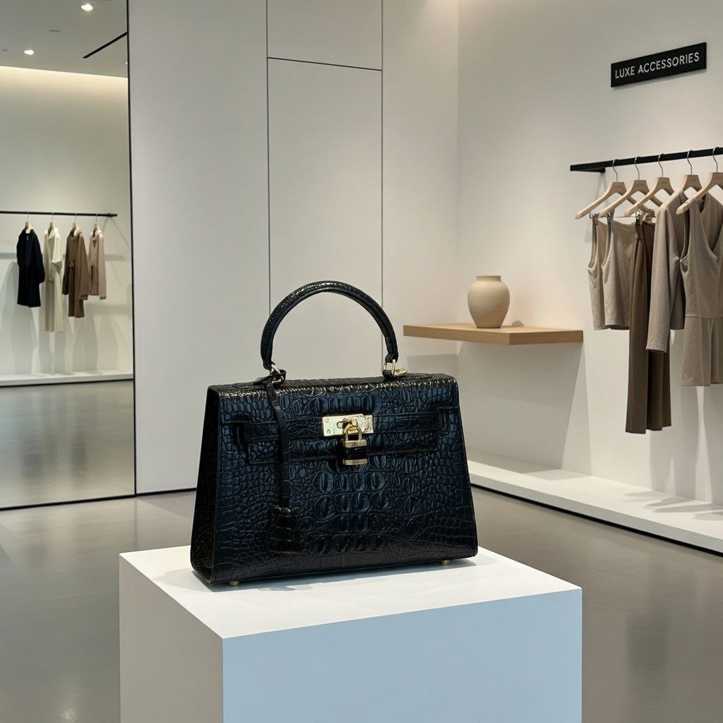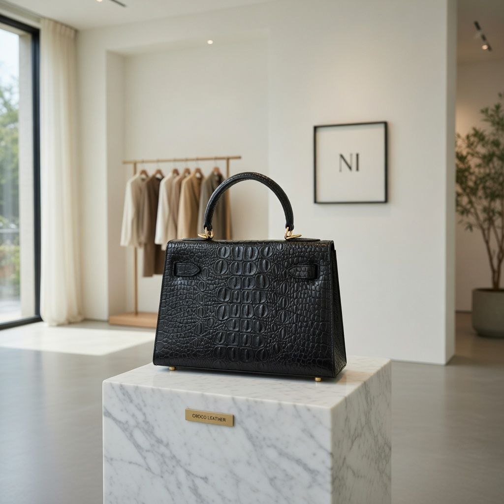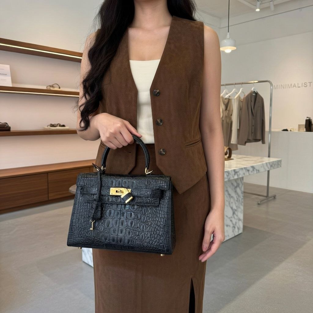 HMZ-02CB XONA IN BLACK CROCO PATTERN HIGH QUALITY LEATHER BAG