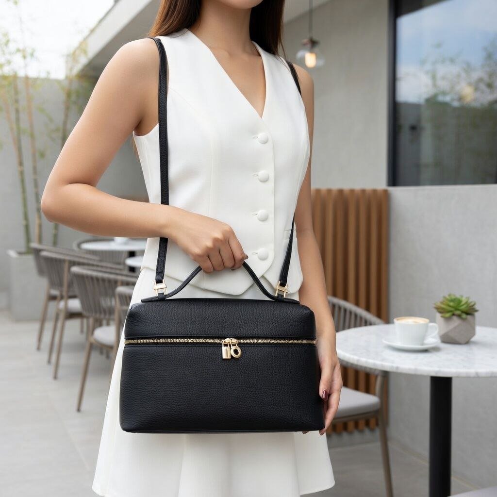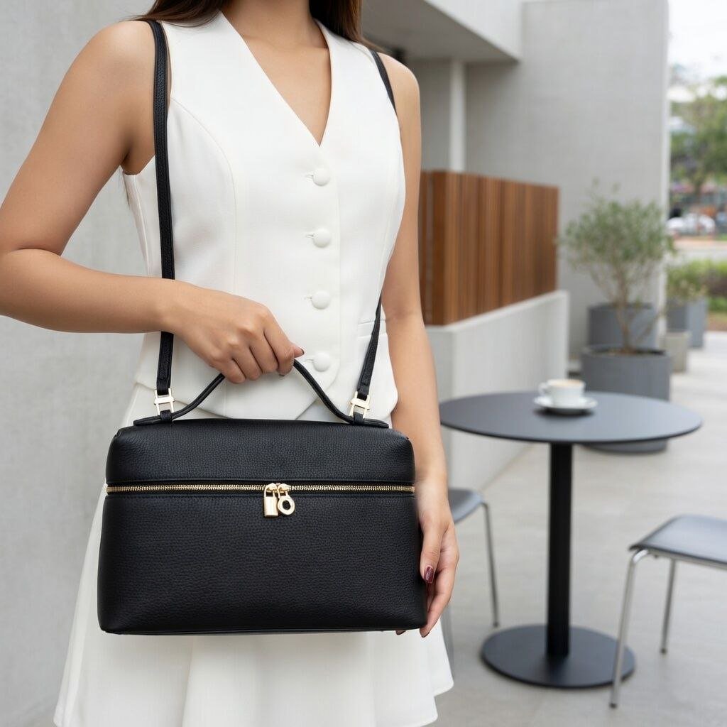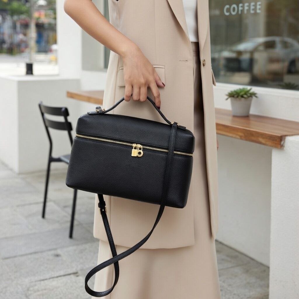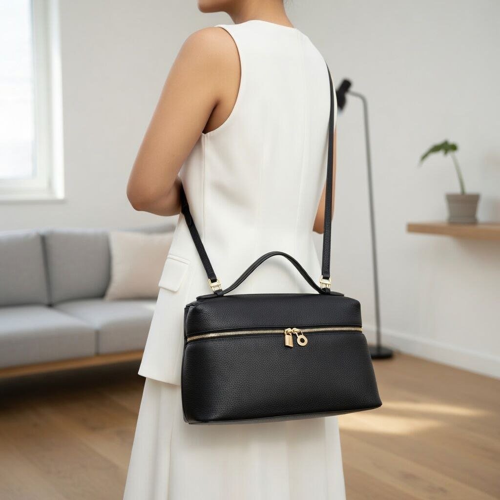 HMZ-04BK BLACK PIENA HIGH QUALITY LEATHER SHOULDER AND CROSSBODY BAG