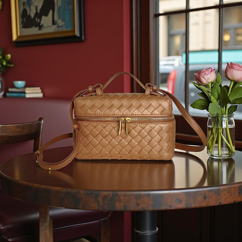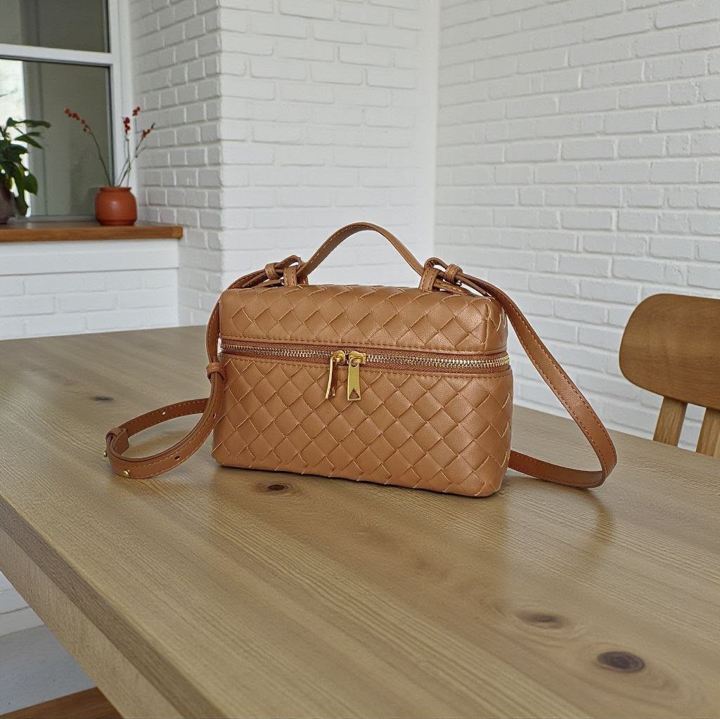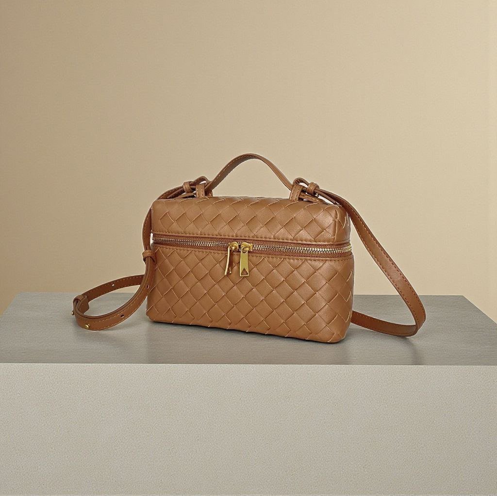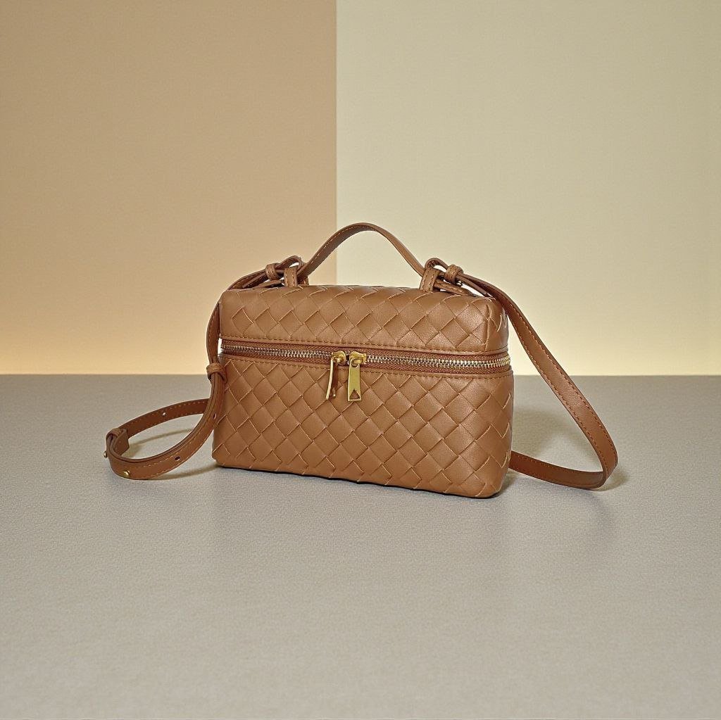 HMZ-04BR BROWN MILKA HIGH QUALITY LEATHER WOVEN MINI SHOULDER AND CROSSBODY BAG