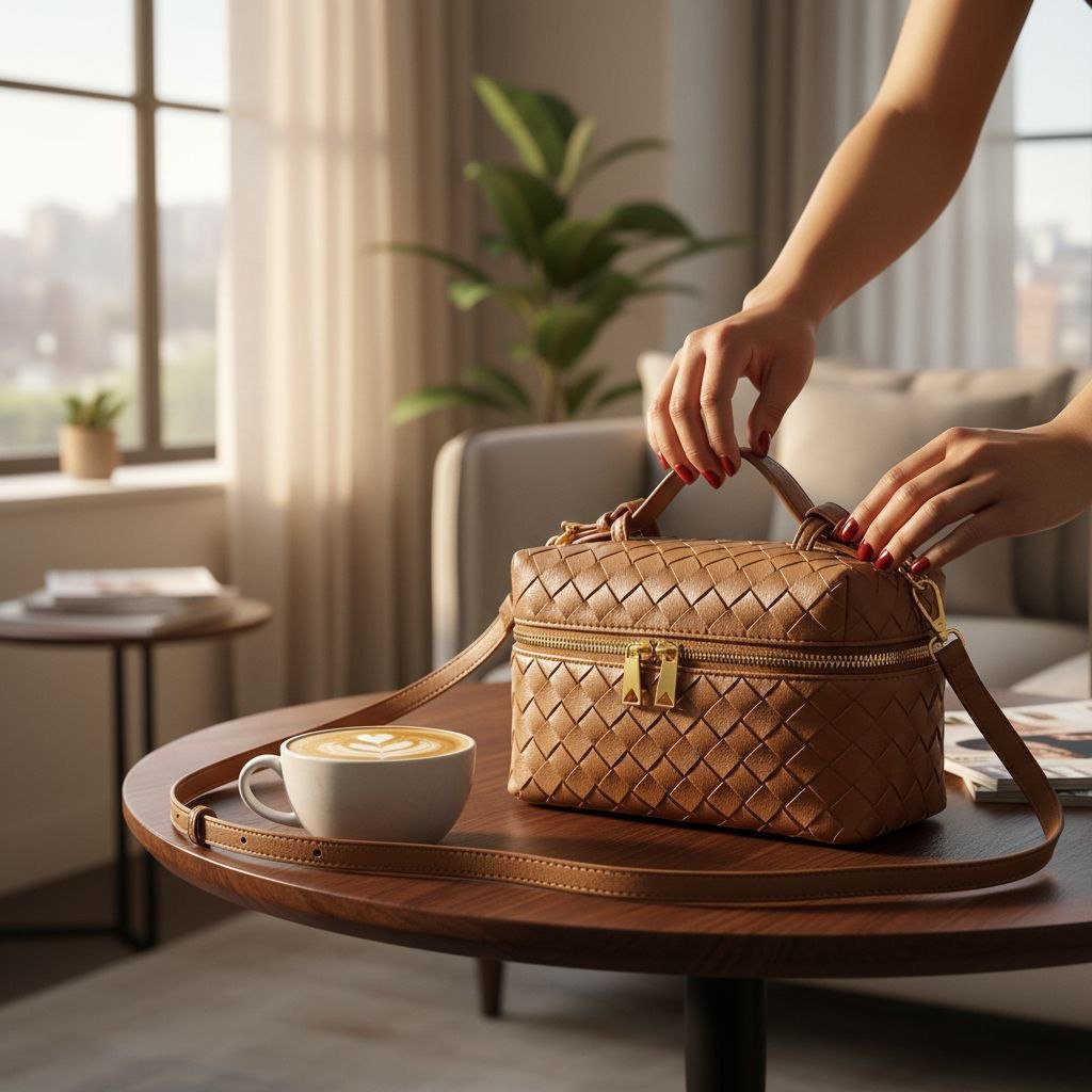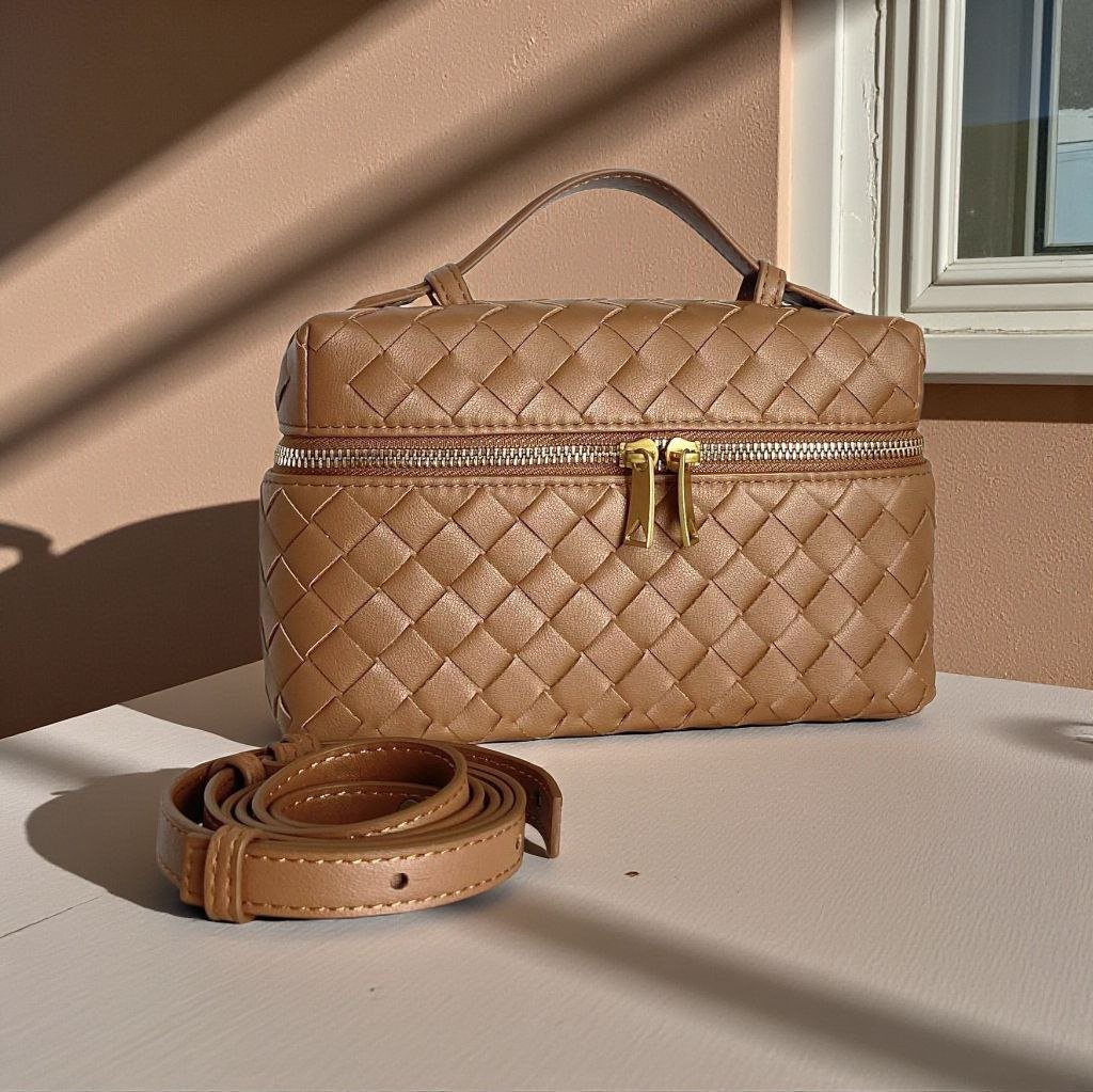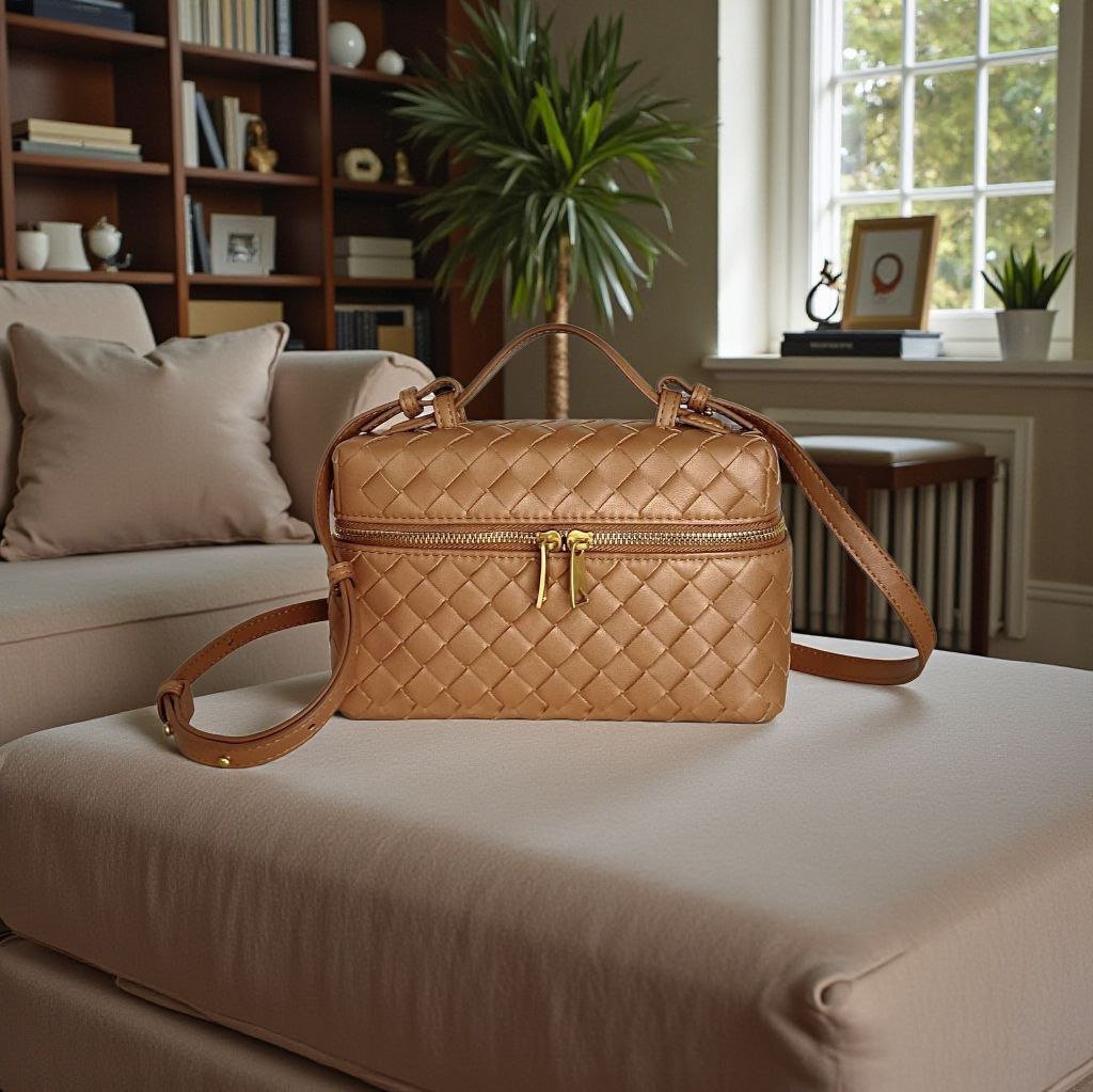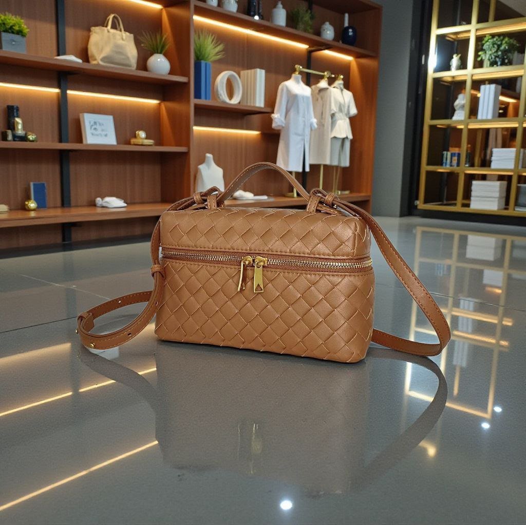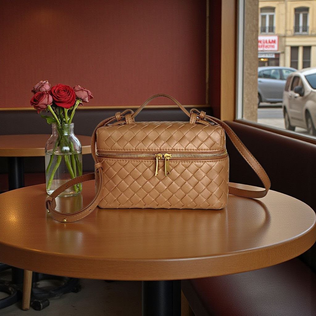 HMZ-04BR BROWN MILKA HIGH QUALITY LEATHER WOVEN MINI SHOULDER AND CROSSBODY BAG