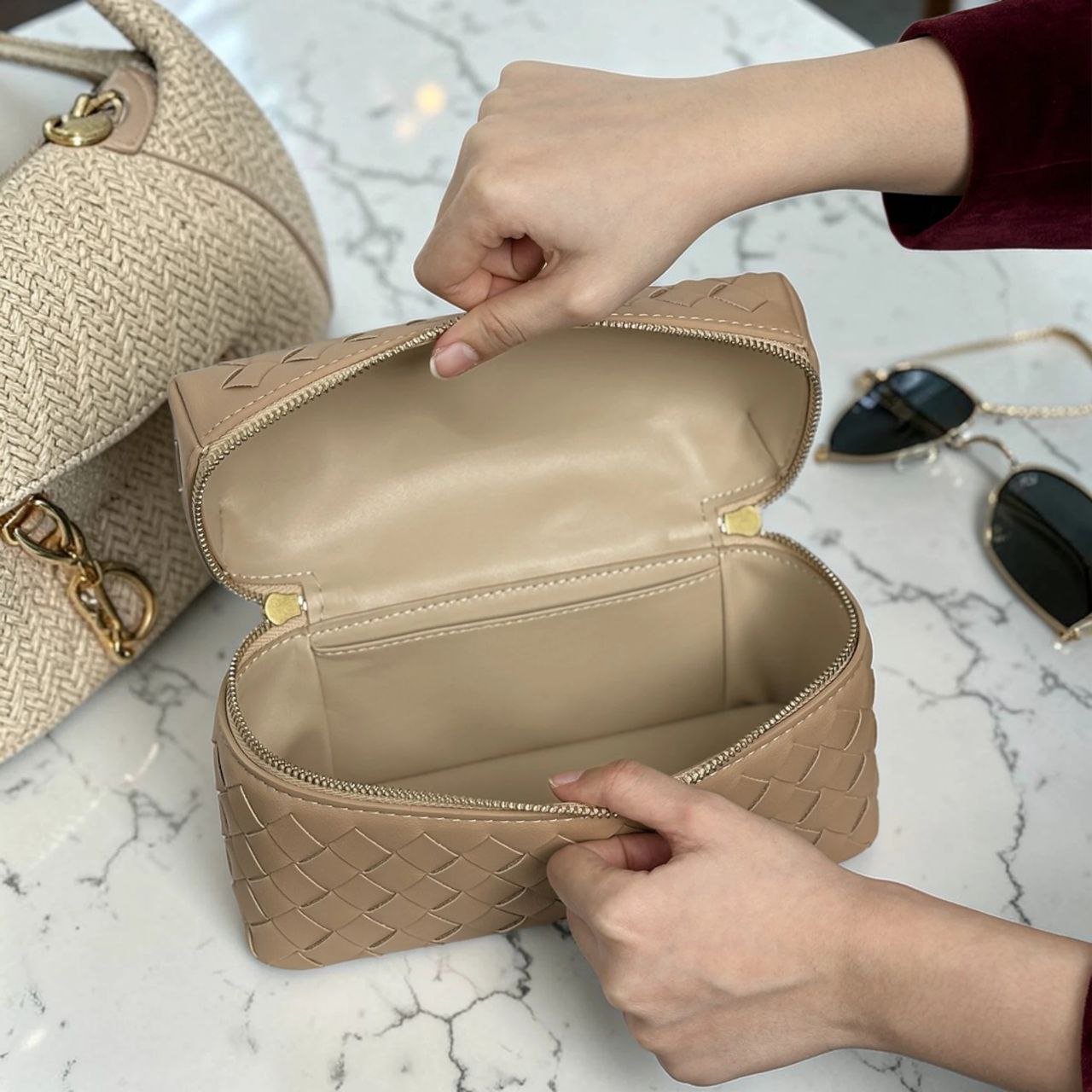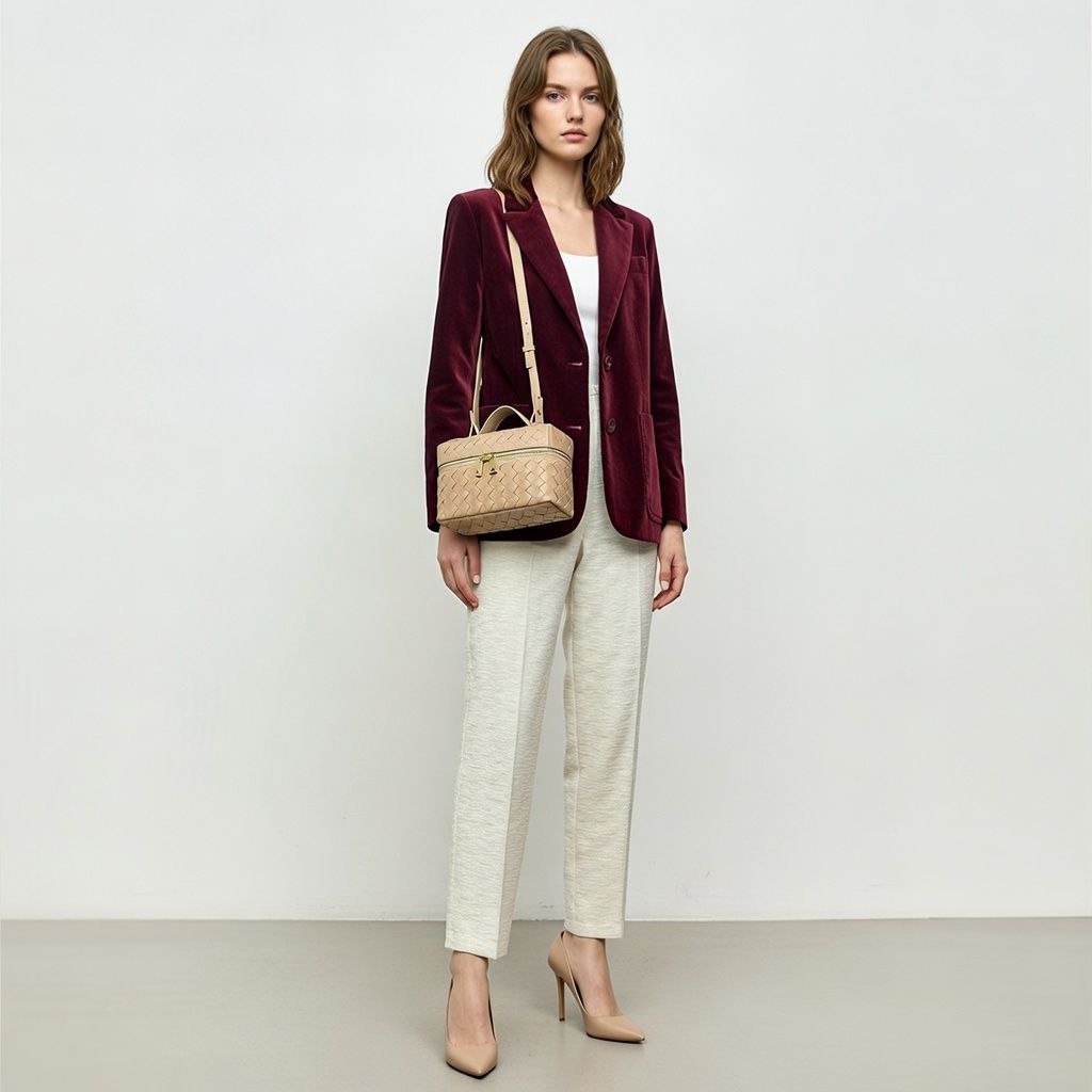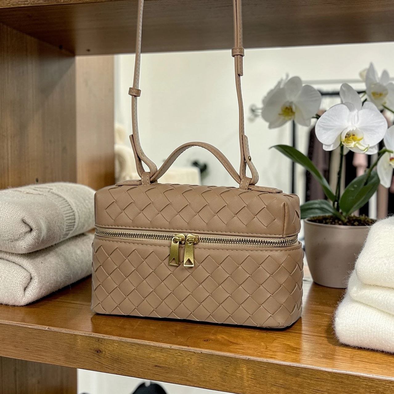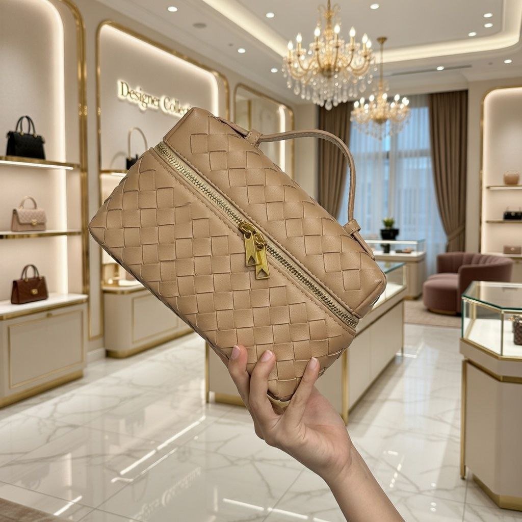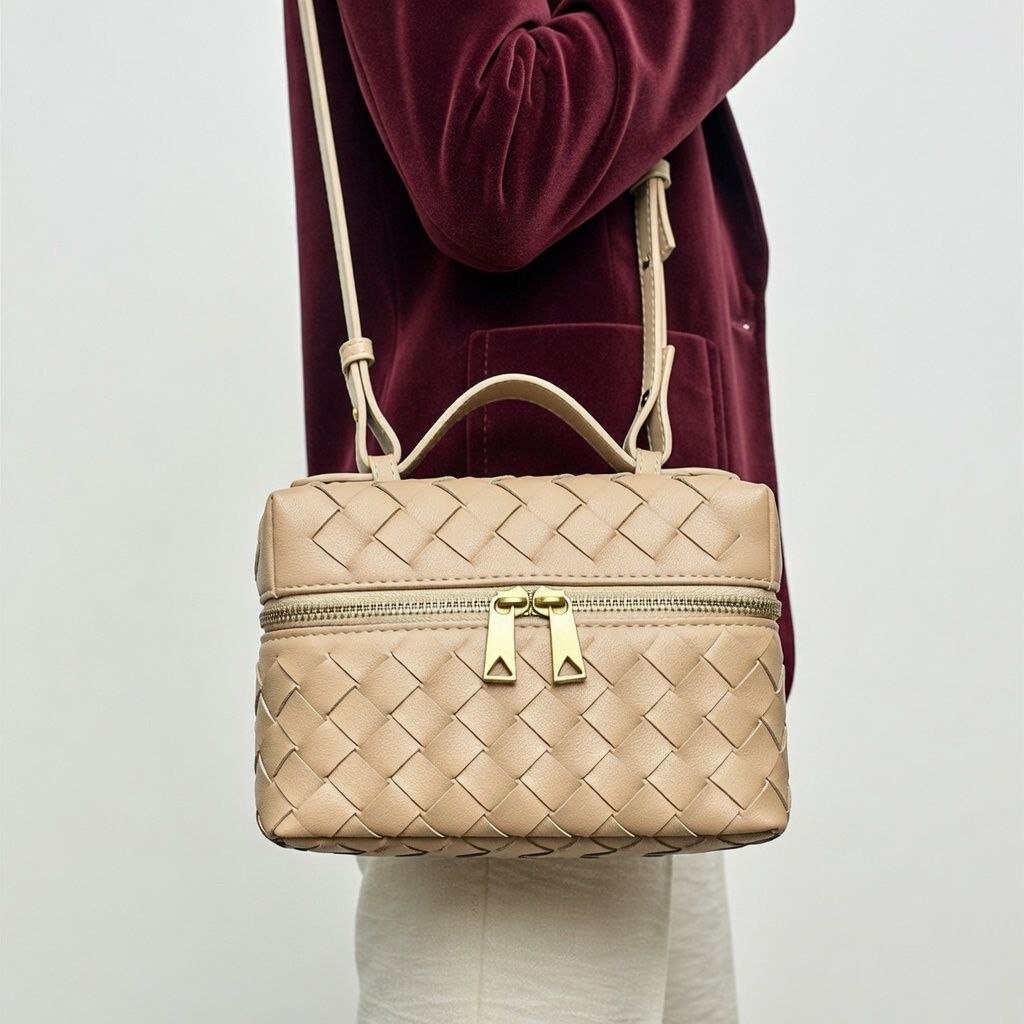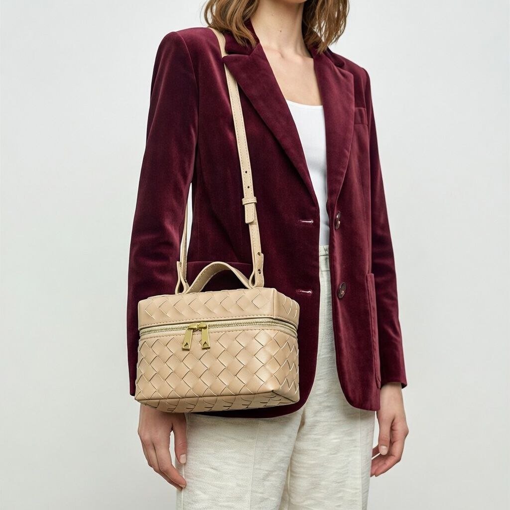 HMZ-04ND NUDE MILKA HIGH QUALITY LEATHER WOVEN MINI SHOULDER AND CROSSBODY BAG