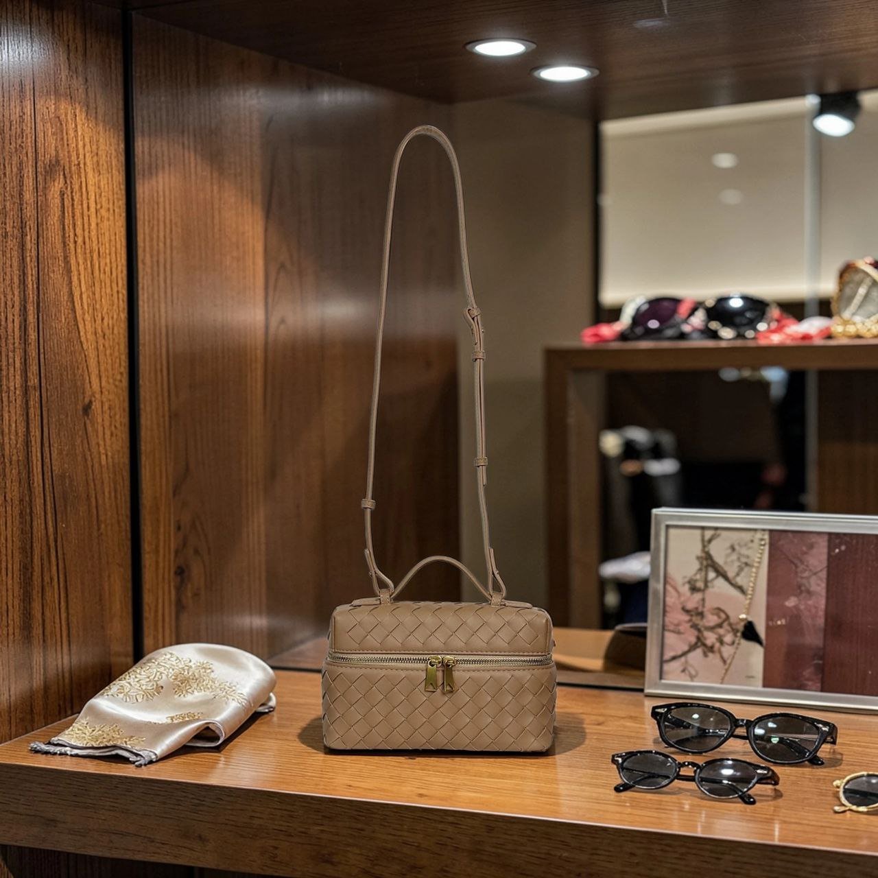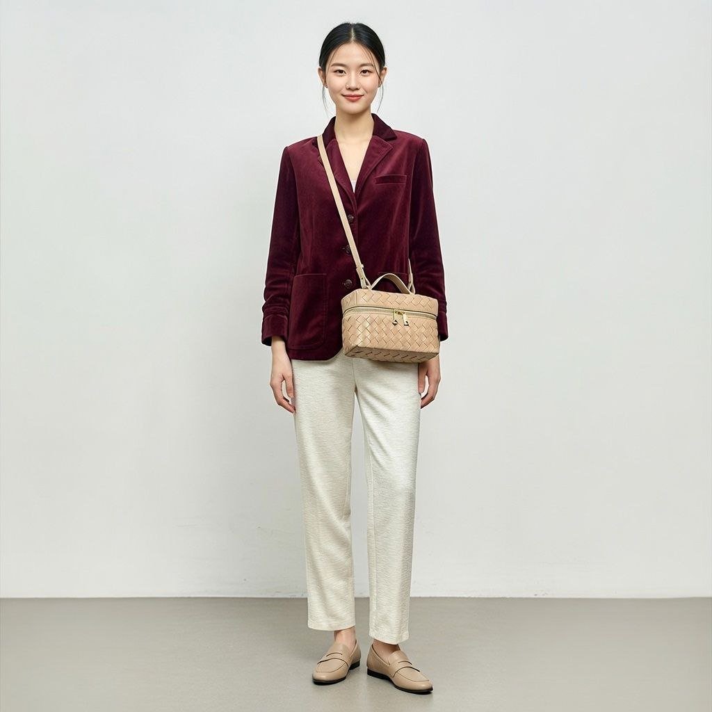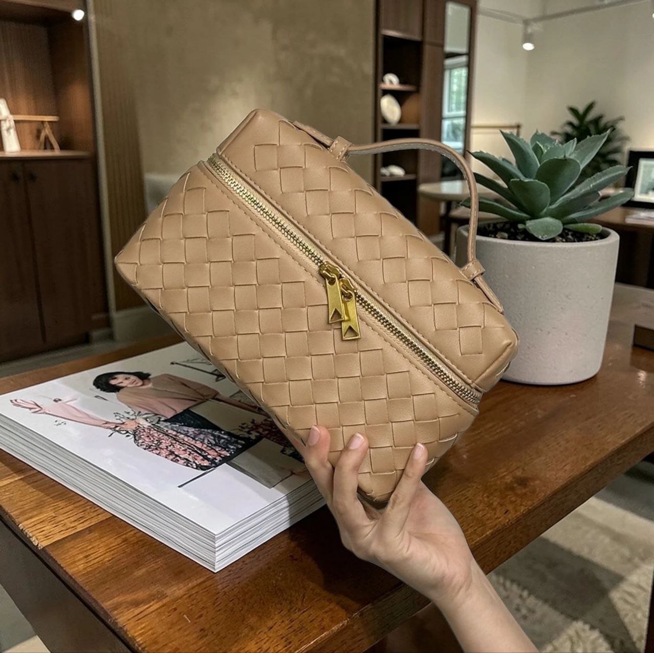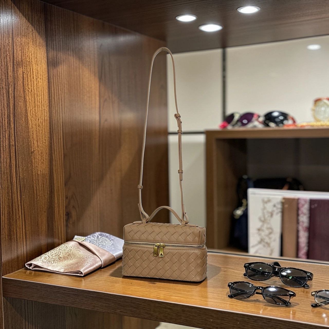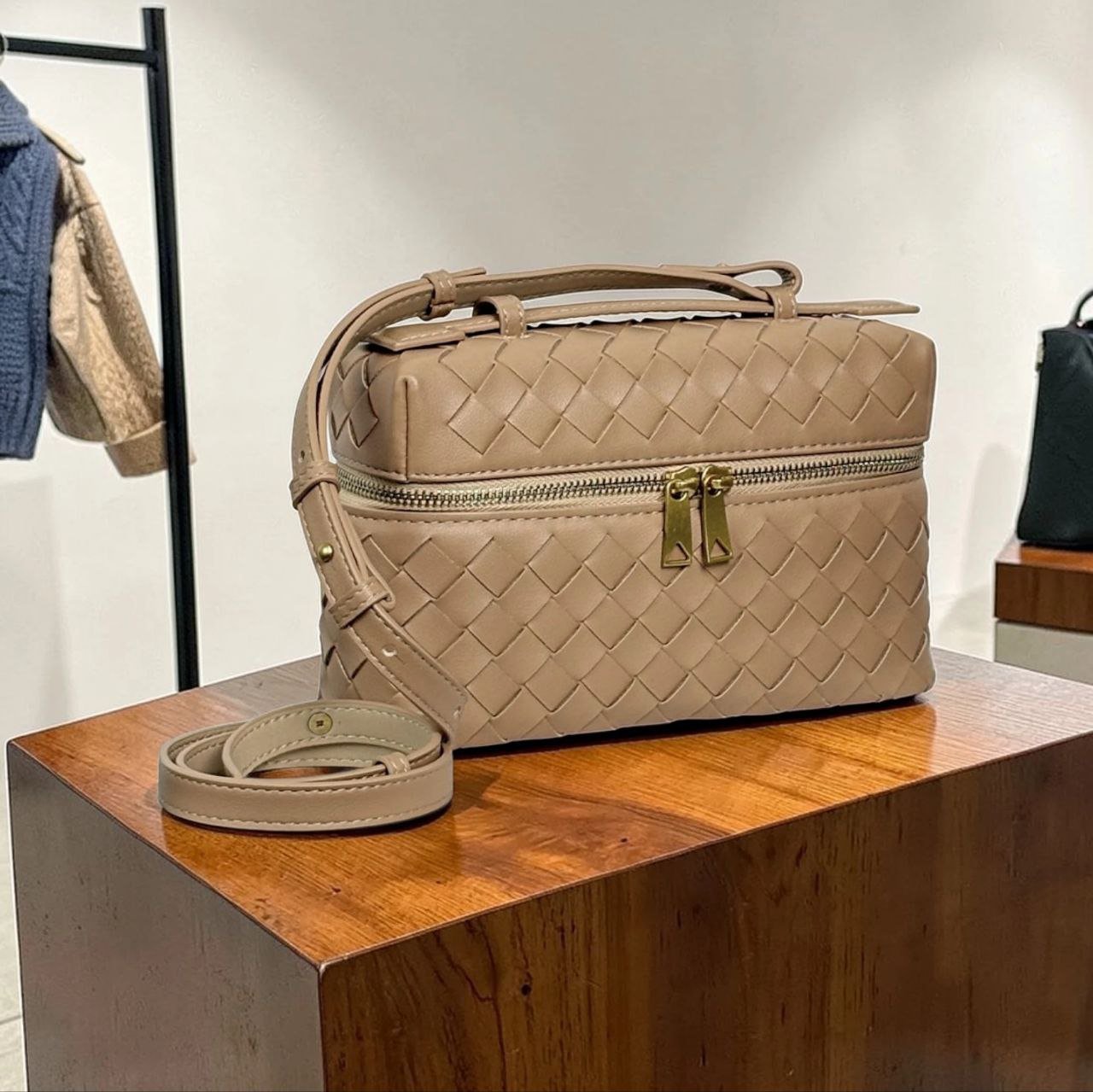 HMZ-04ND NUDE MILKA HIGH QUALITY LEATHER WOVEN MINI SHOULDER AND CROSSBODY BAG