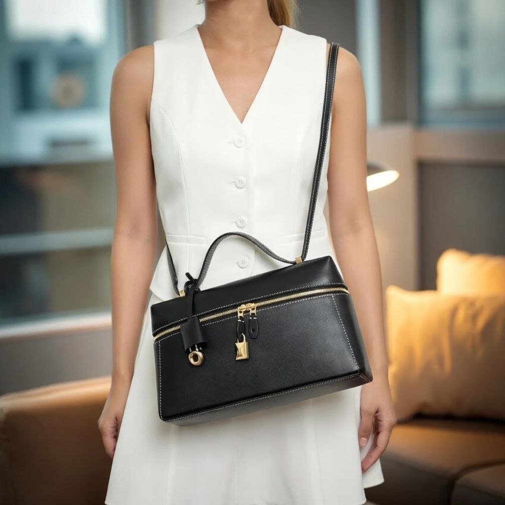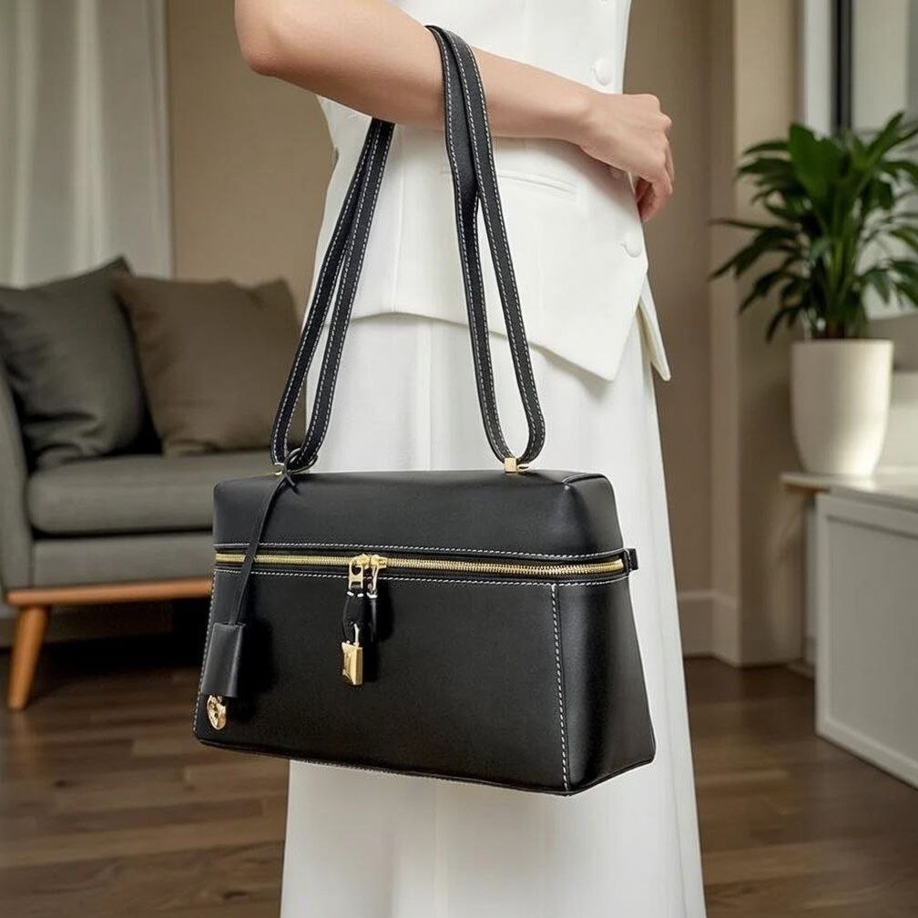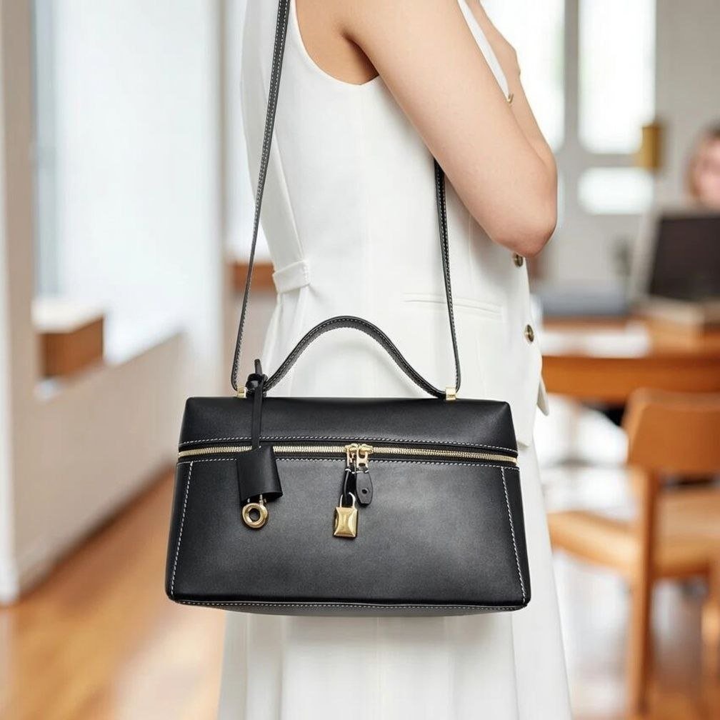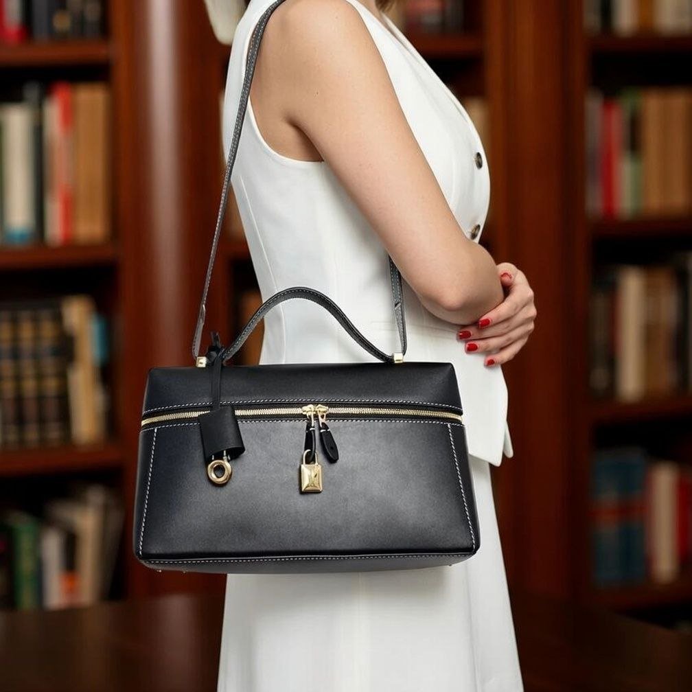 HMZ-05BK BLACK RIVA HIGH QUALITY LEATHER SHOULDER AND CROSSBODY BAG