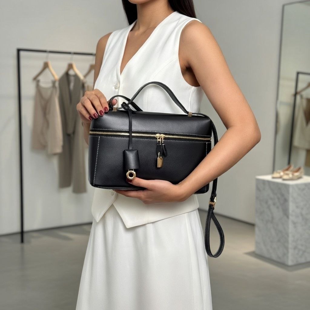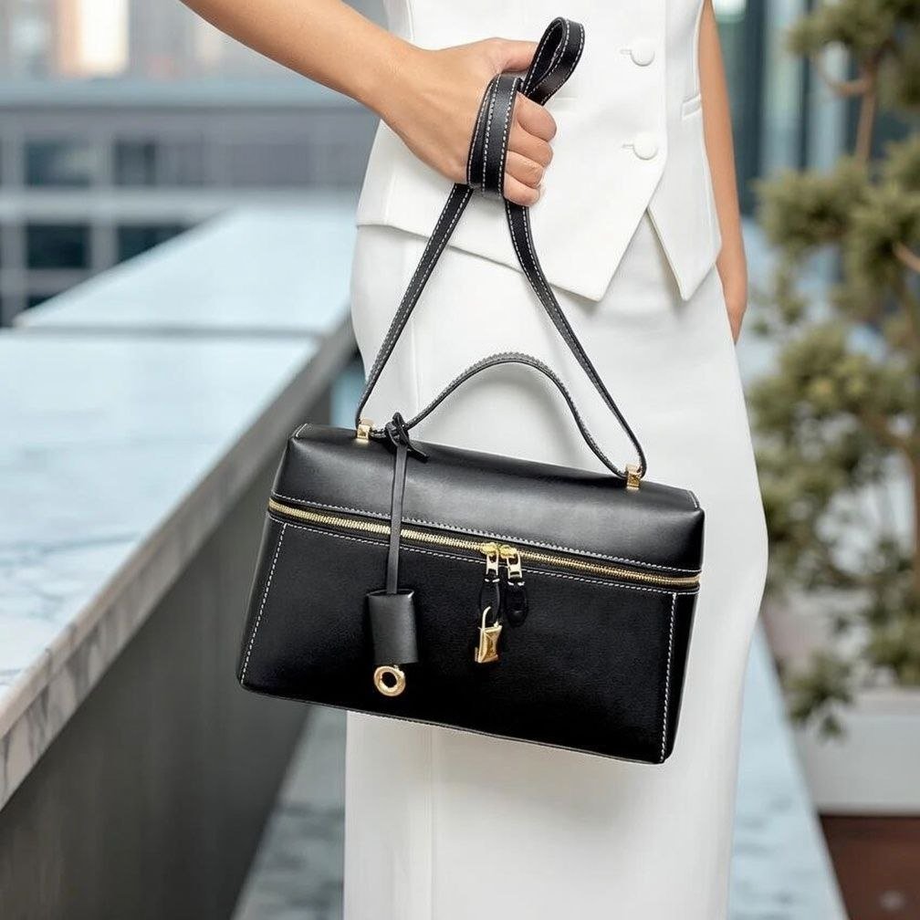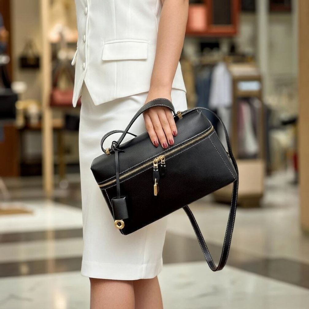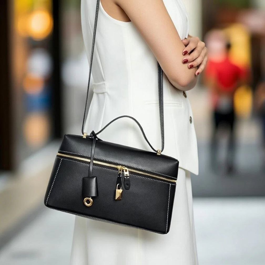 HMZ-05BK BLACK RIVA HIGH QUALITY LEATHER SHOULDER AND CROSSBODY BAG