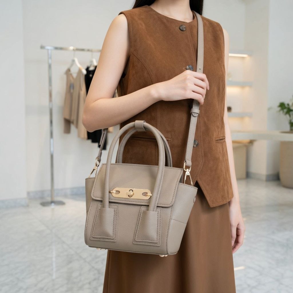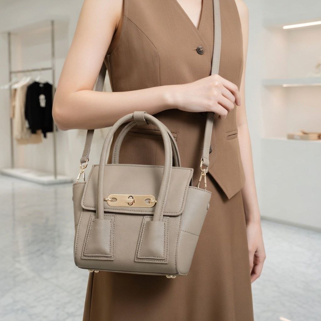 HMZ-05KH GOMA KHAKI COLOR HIGH QUALITY LEATHER SHOULDER AND CROSSBODY BAG