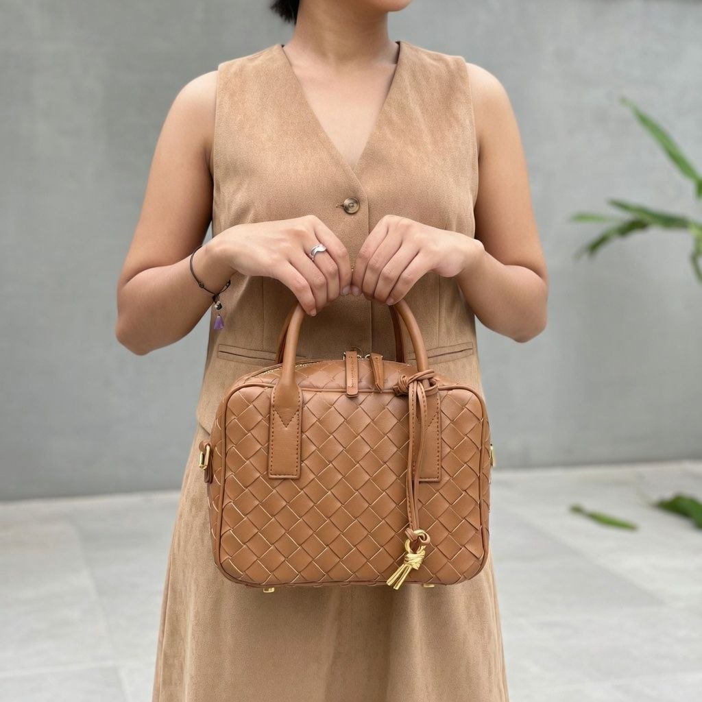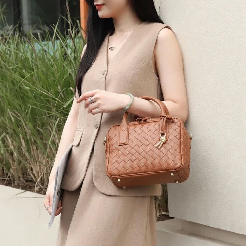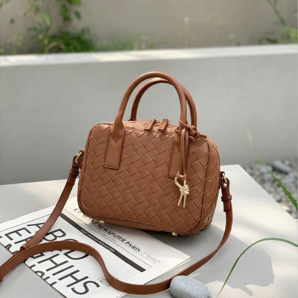 HMZ-06BR BROWN HIWA WOVEN LUXURY SHOULDER AND CROSSBODY BAG
