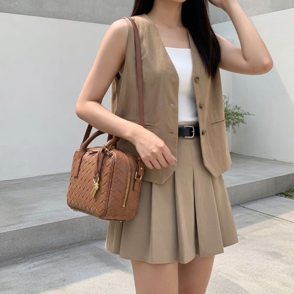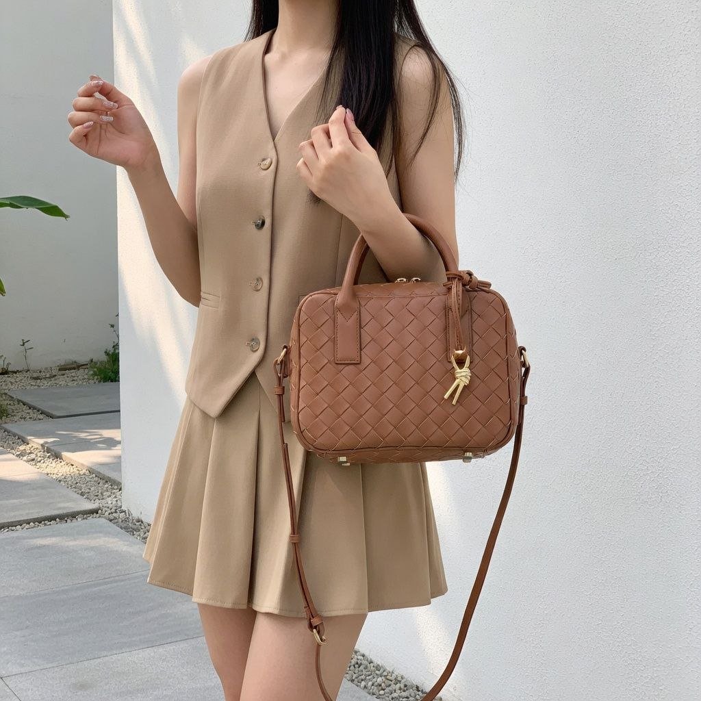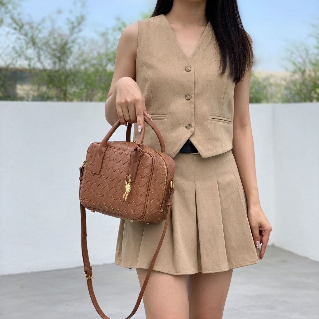HMZ-06BR BROWN HIWA WOVEN LUXURY SHOULDER AND CROSSBODY BAG