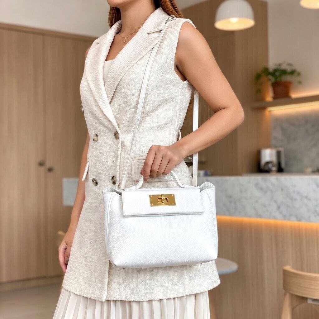 HMZ-06WT SERENA WHITE LUXURY SHOULDER AND SLINGBAG