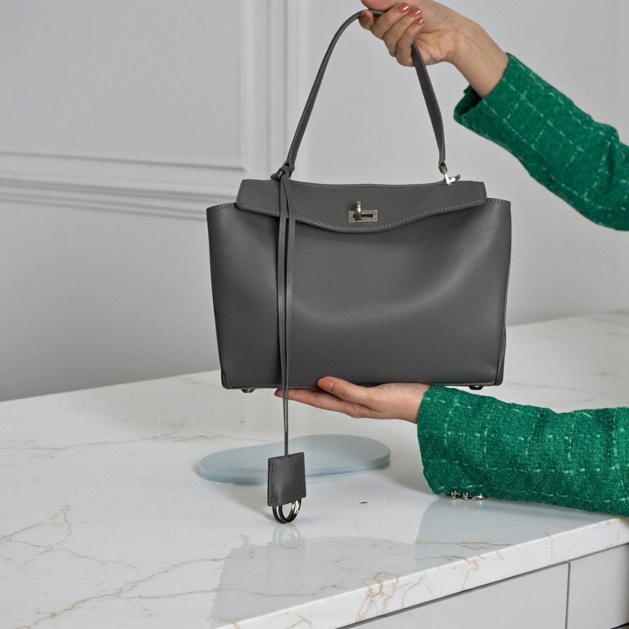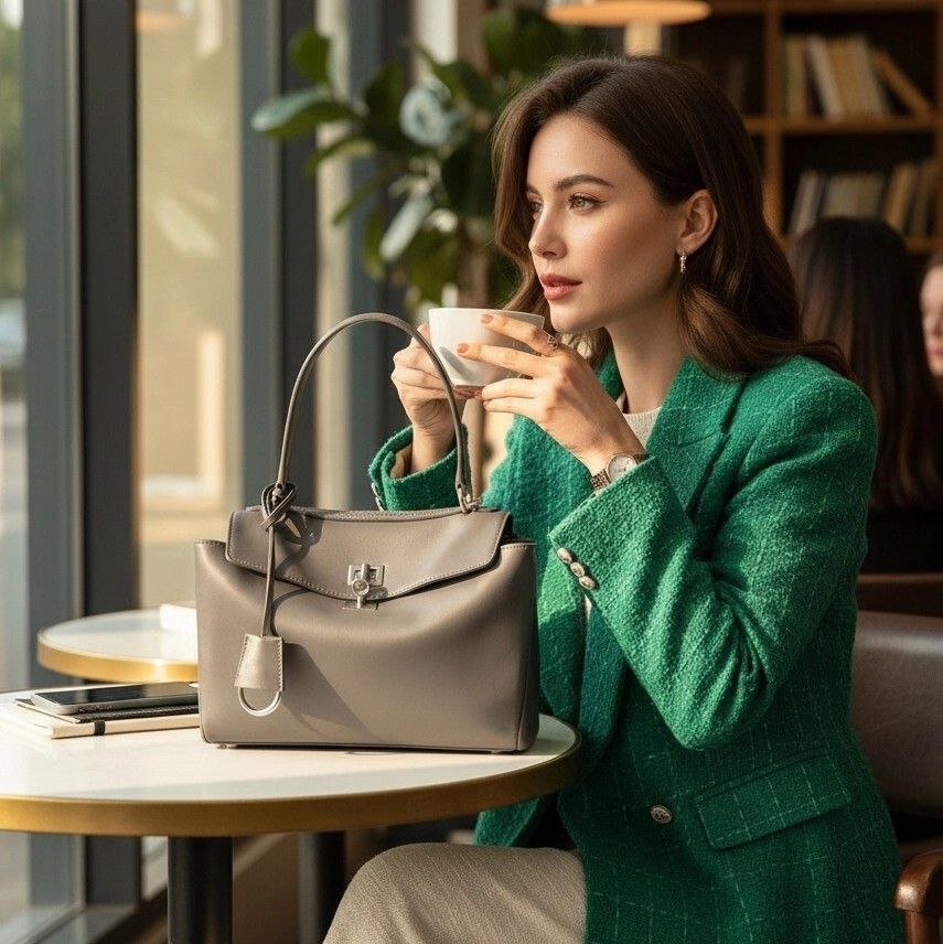 JS-10GR GREY ZARYA HIGH QUALITY LEATHER SHOULDER AND CROSSBODY BAG