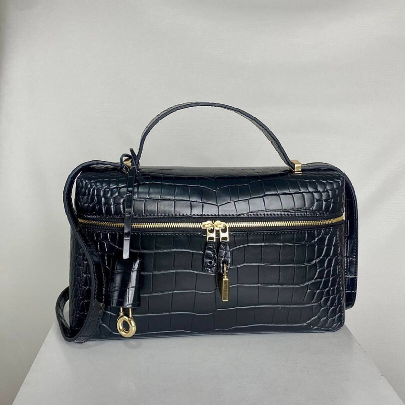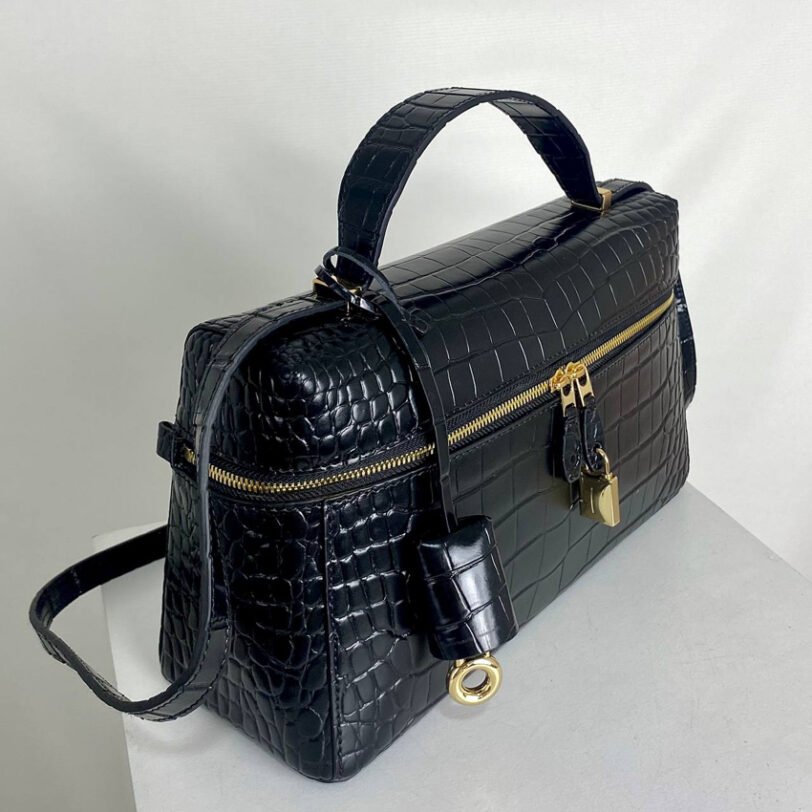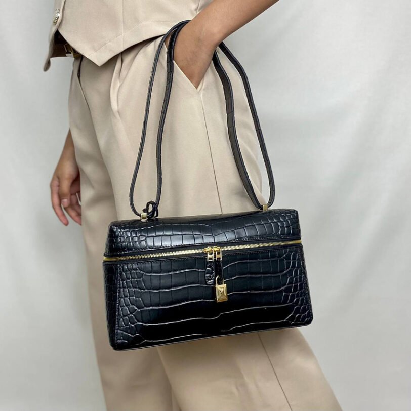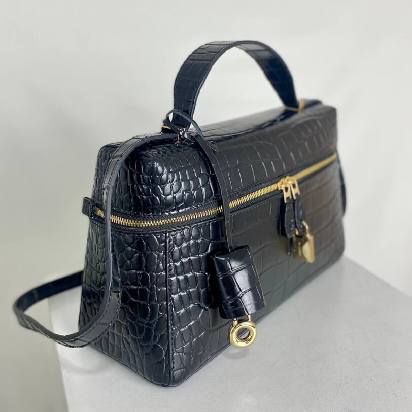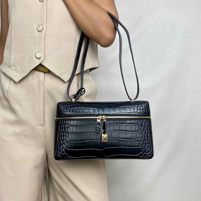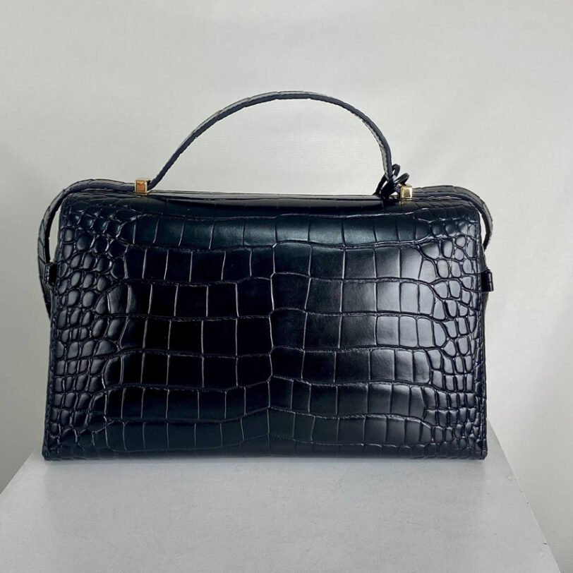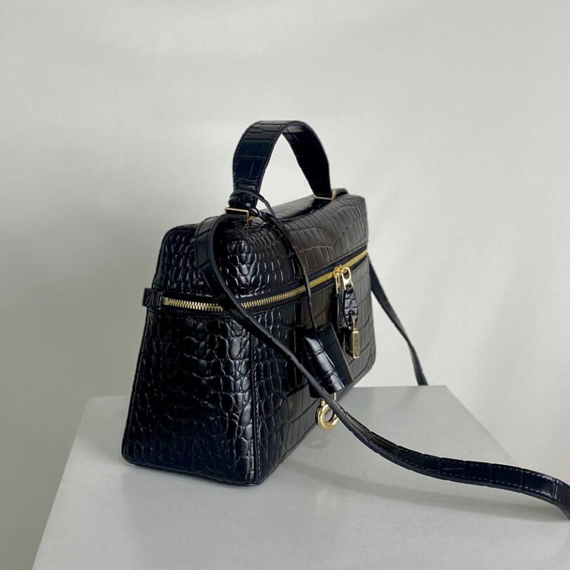 KFH-05BK BLACK RIVA CROCO LUXURY SHOULDER AND CROSSBODY BAG
