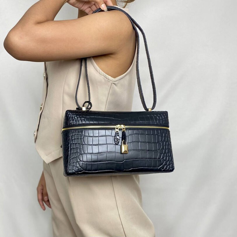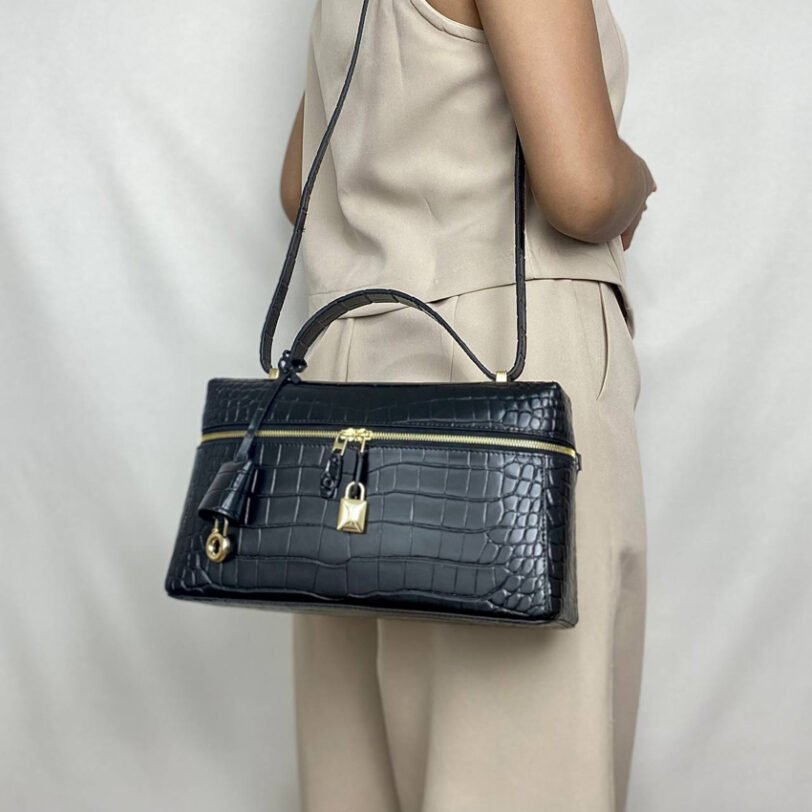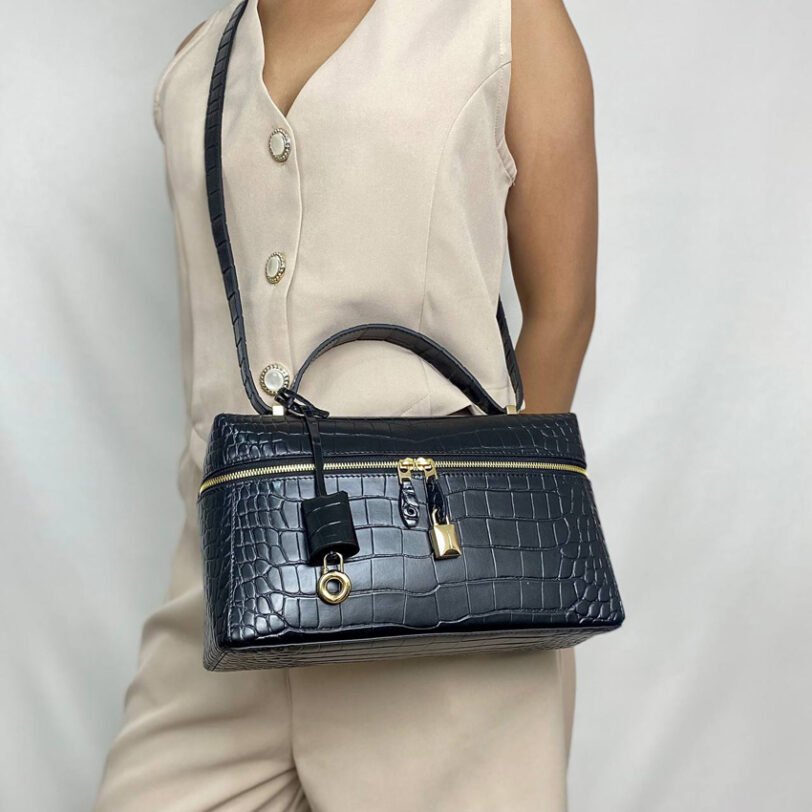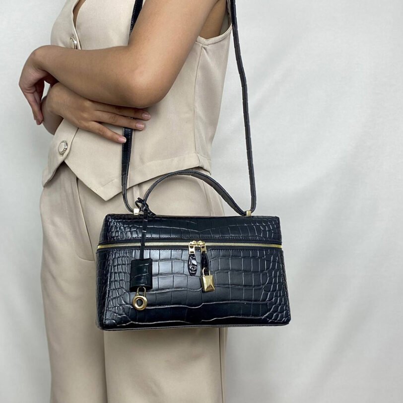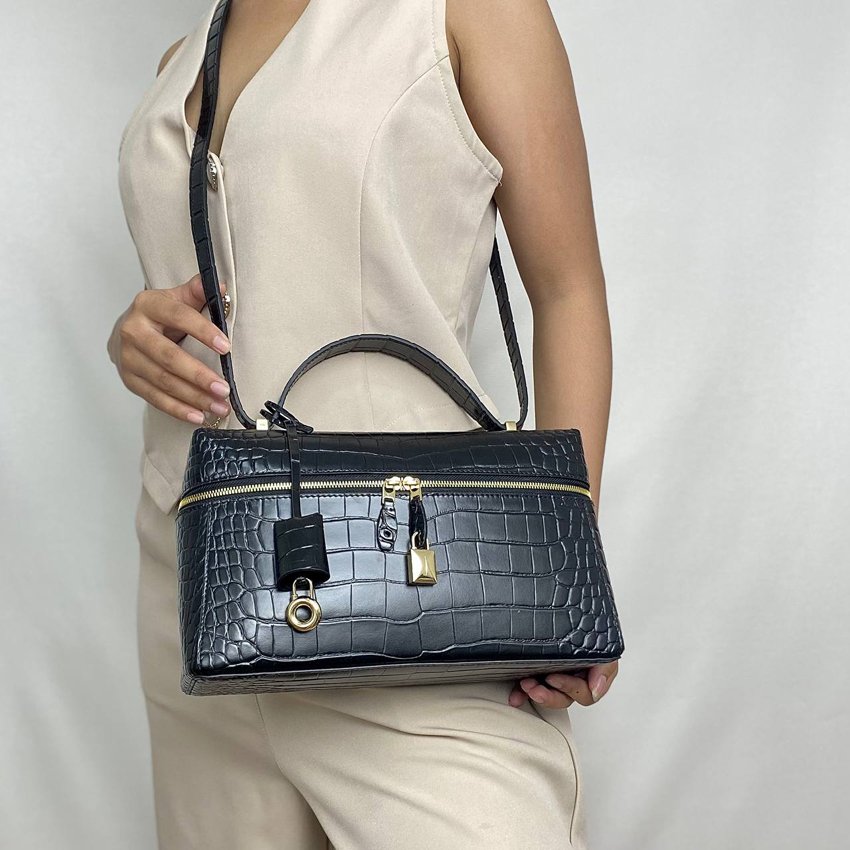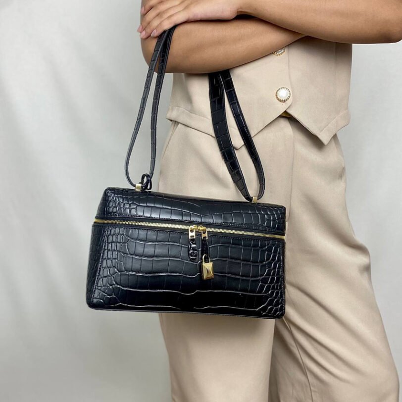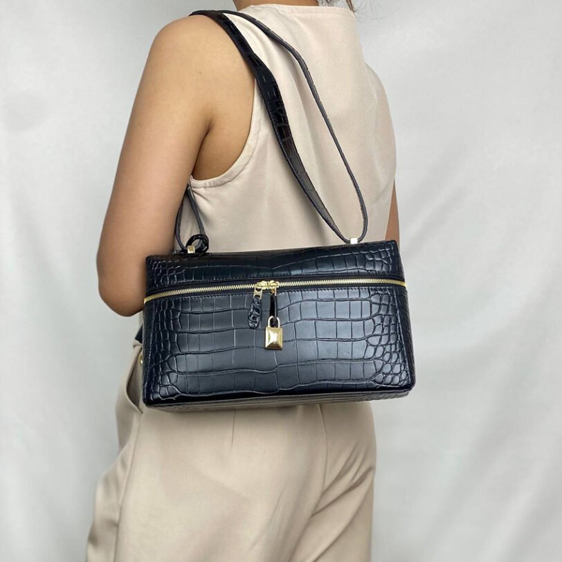 KFH-05BK BLACK RIVA CROCO LUXURY SHOULDER AND CROSSBODY BAG
