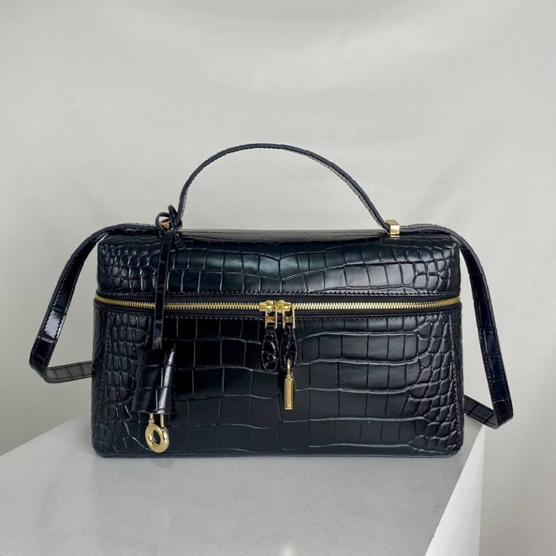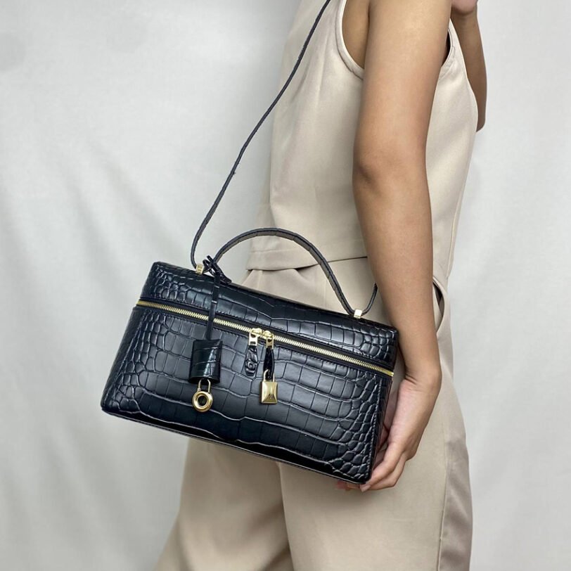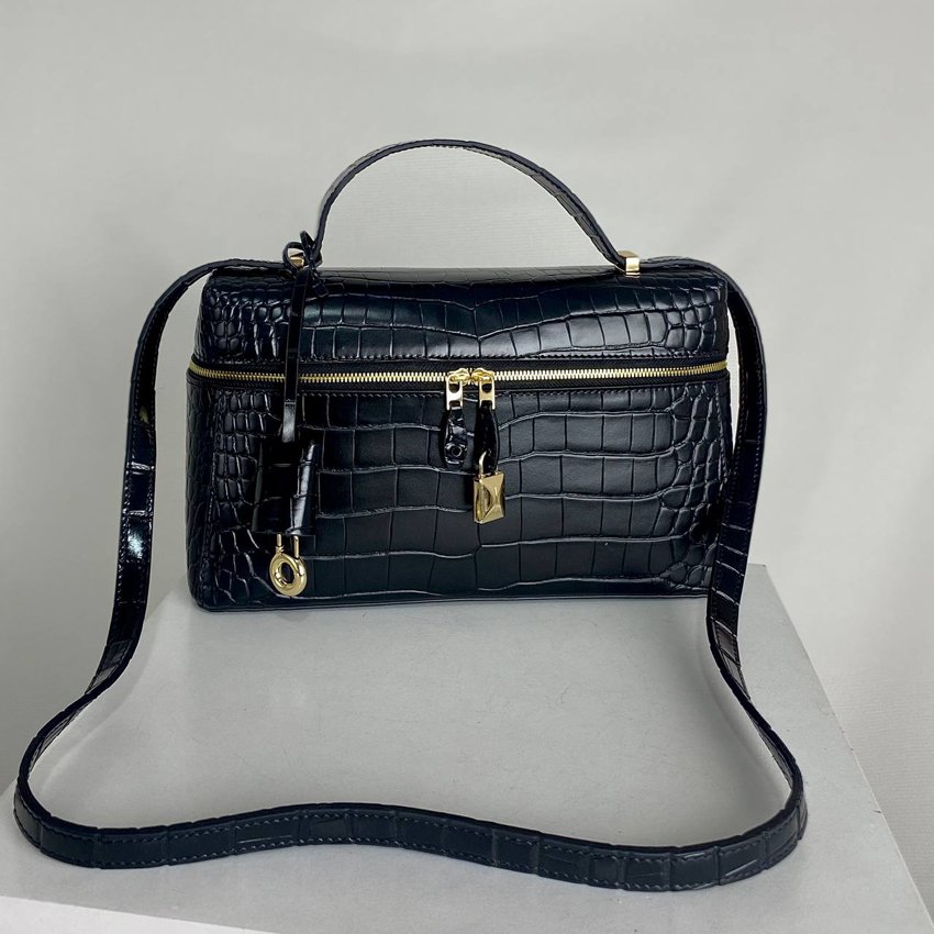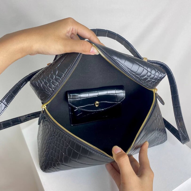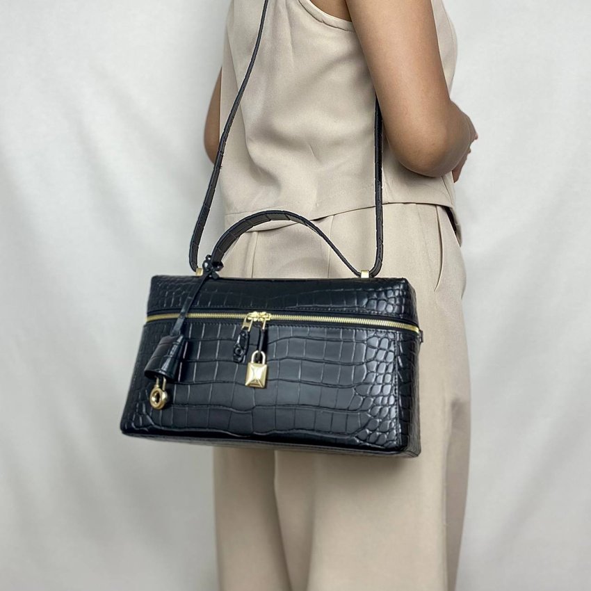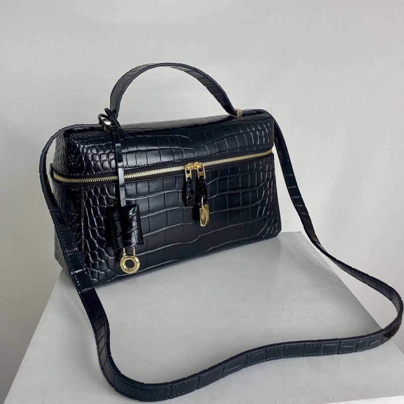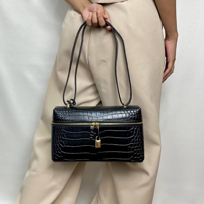 KFH-05BK BLACK RIVA CROCO LUXURY SHOULDER AND CROSSBODY BAG