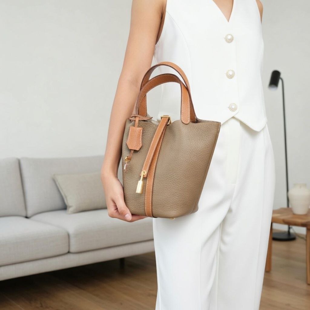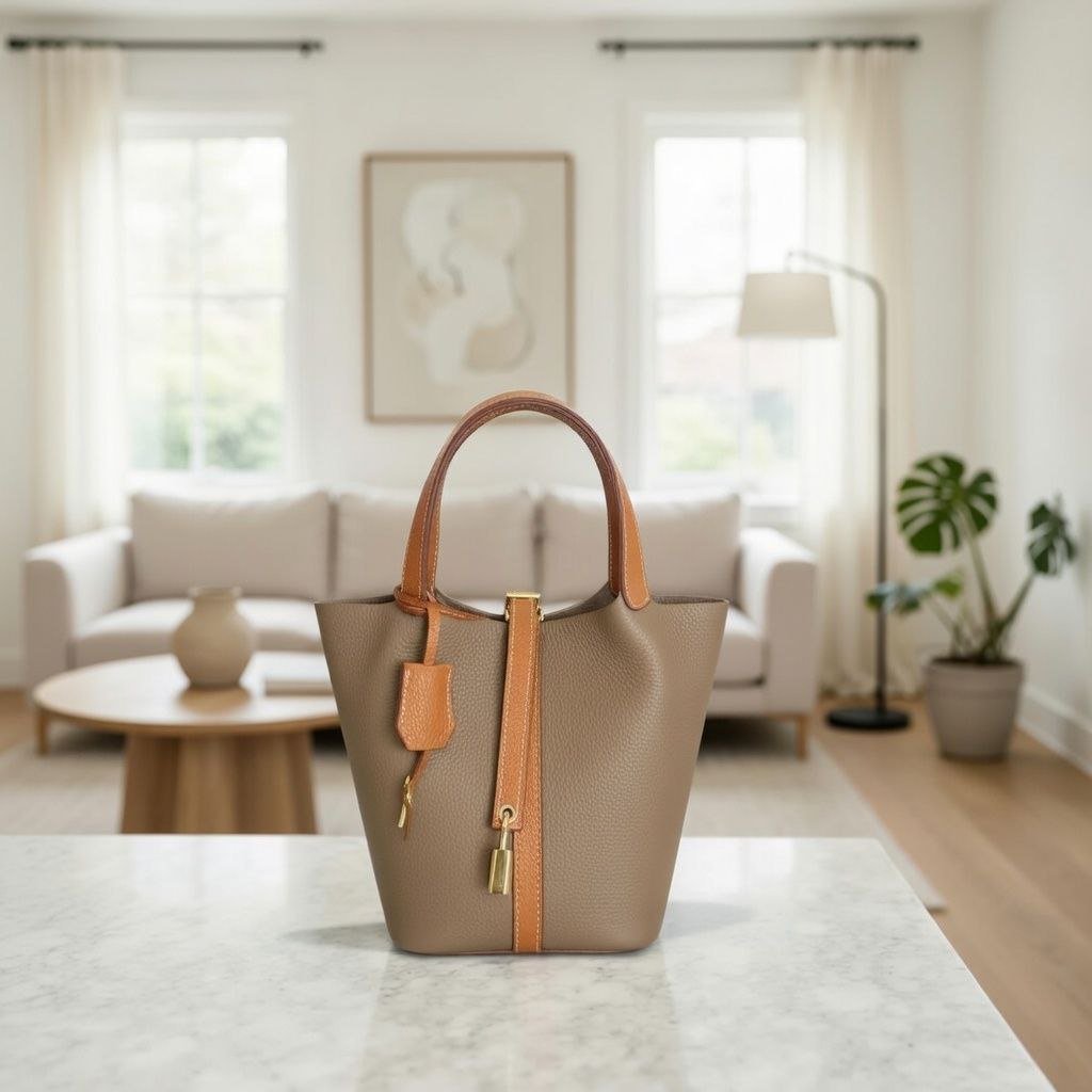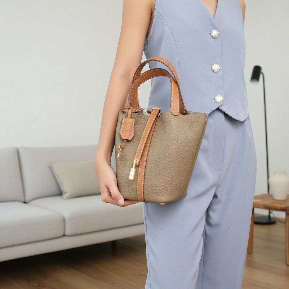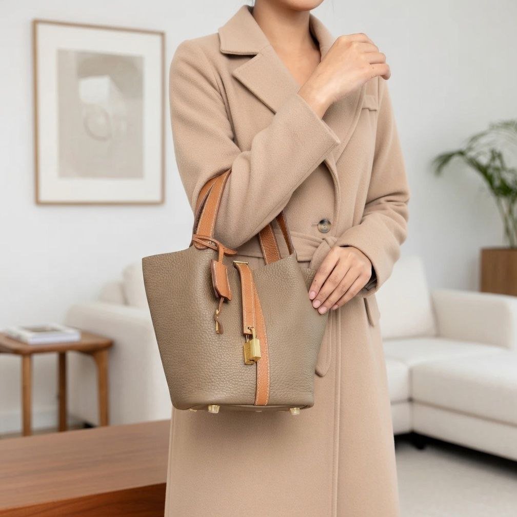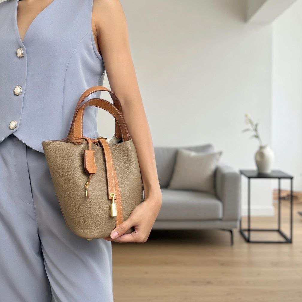 MCB-01BKK PICO BROWN KHAKI MINI HIGH QUALITY LEATHER HAND BAG