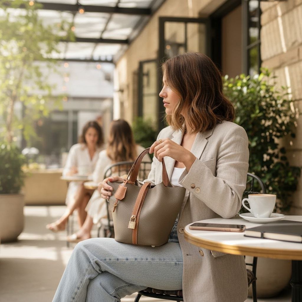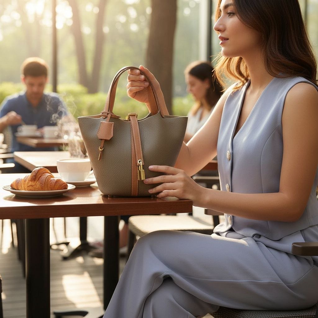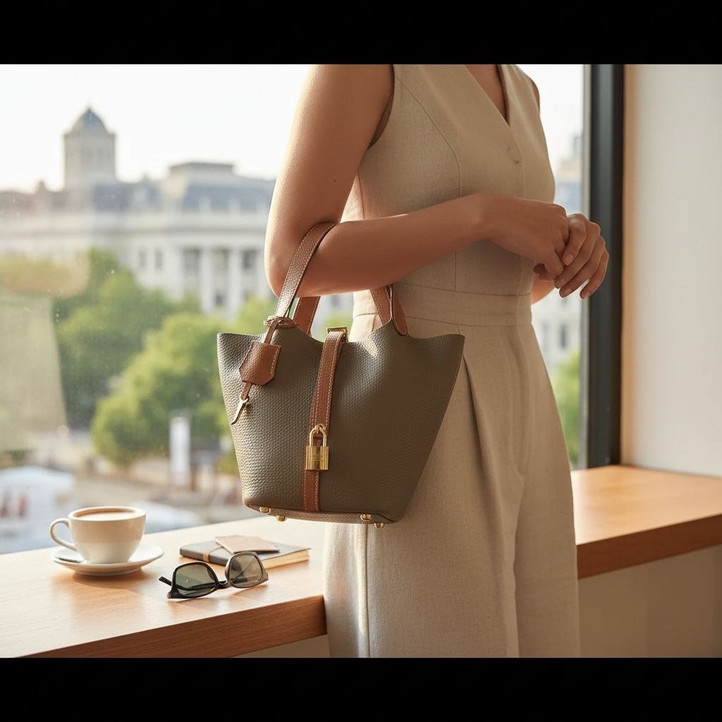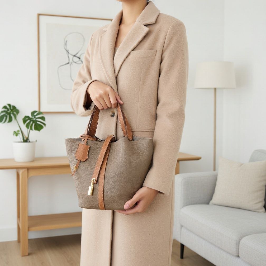 MCB-01BKK PICO BROWN KHAKI MINI HIGH QUALITY LEATHER HAND BAG