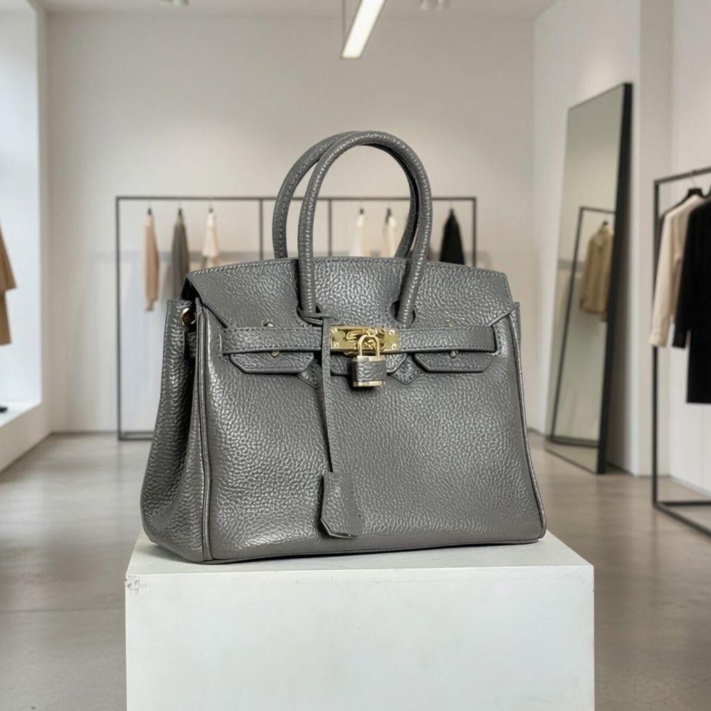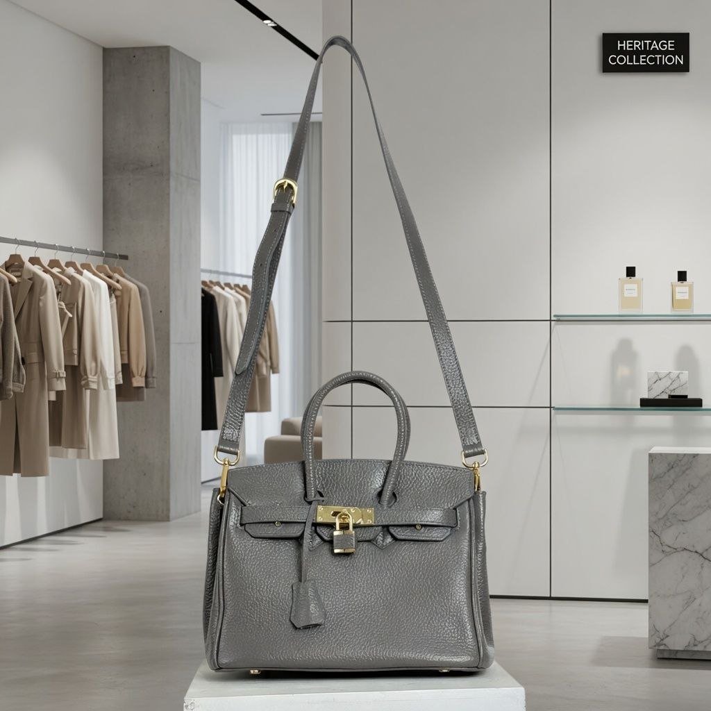 MSB-04GY QUINBI IN GREY HIGH QUALITY LEATHER TOTE BAG