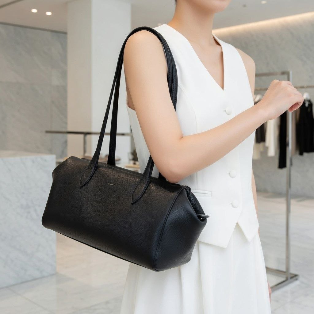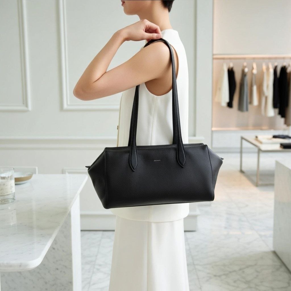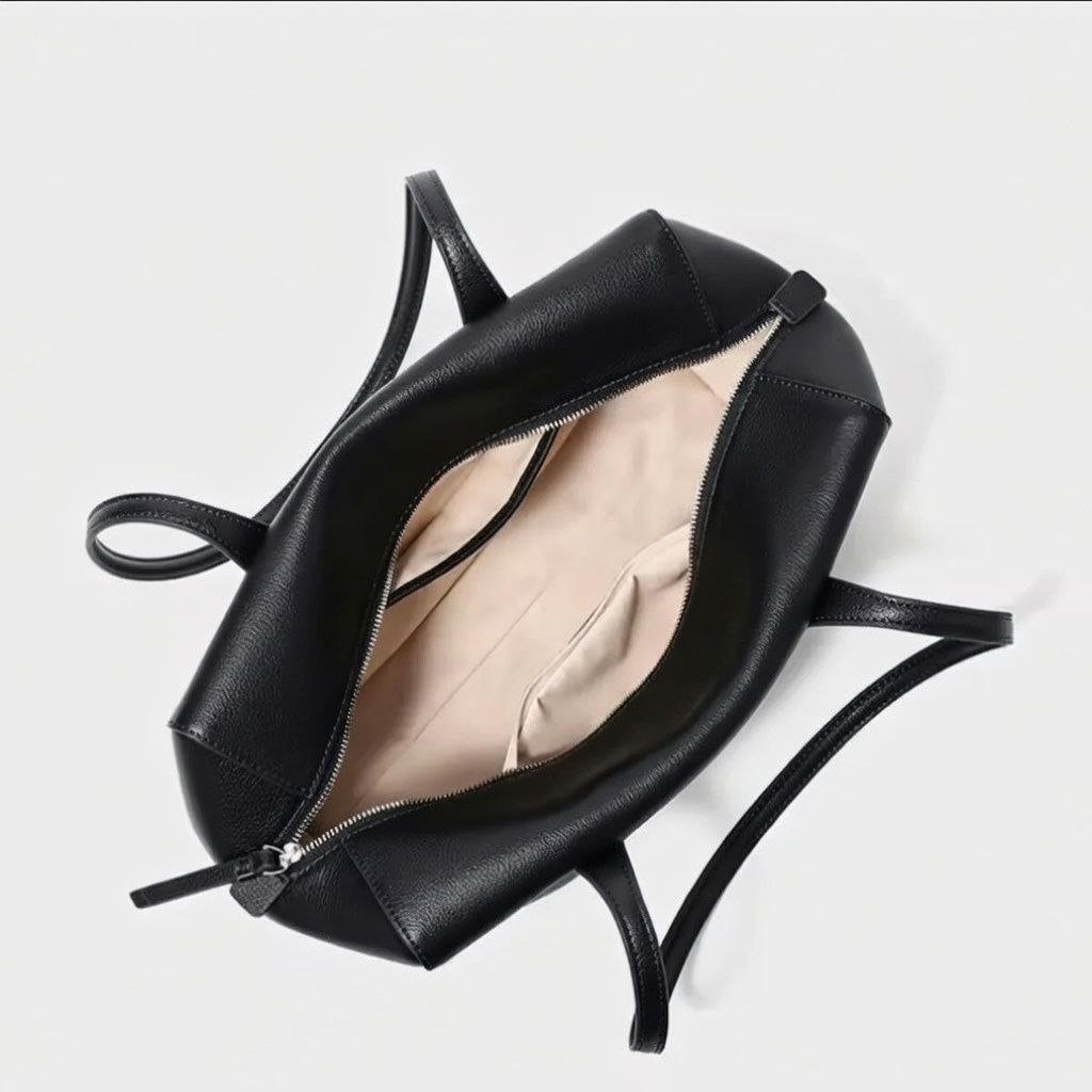 MTB-01BK MILESA BLACK HIGH QUALITY LEATHER SHOULDER TOTE BAG