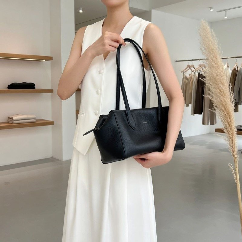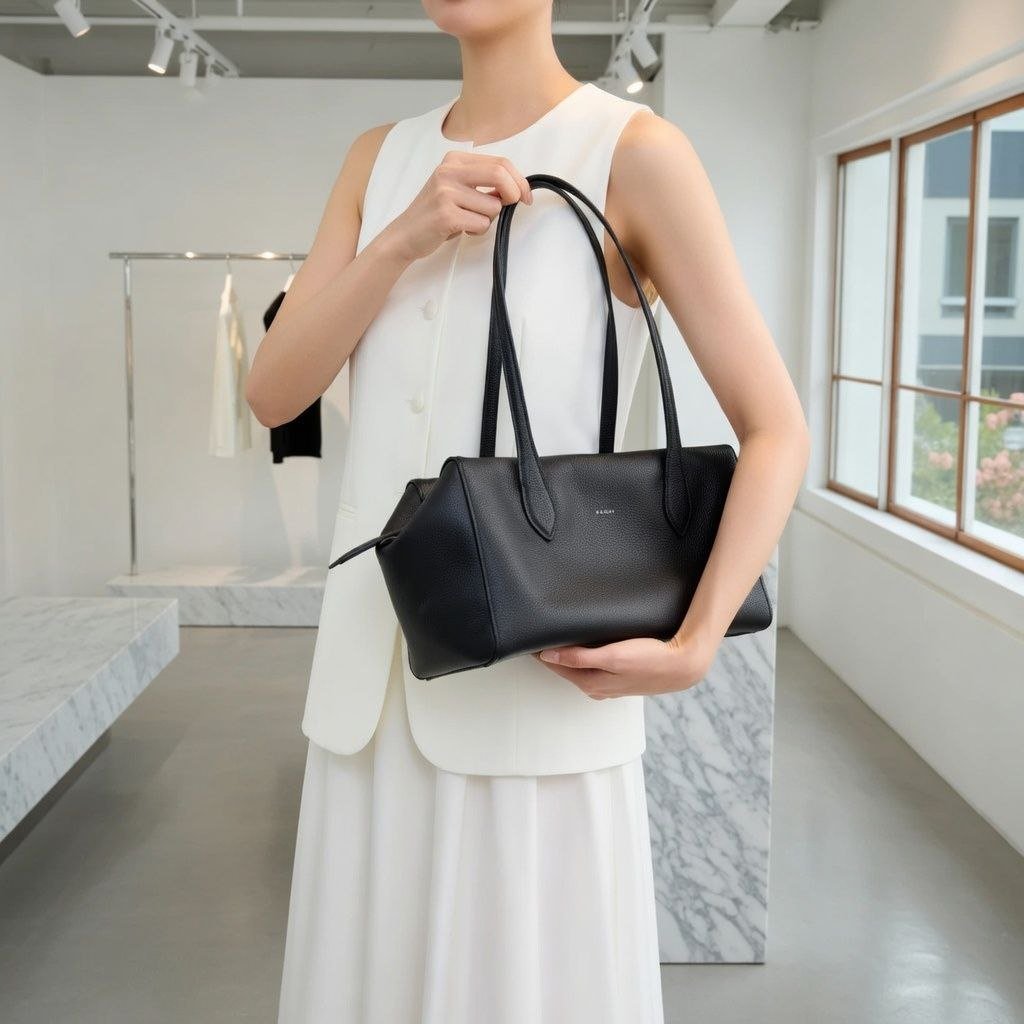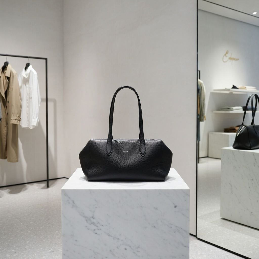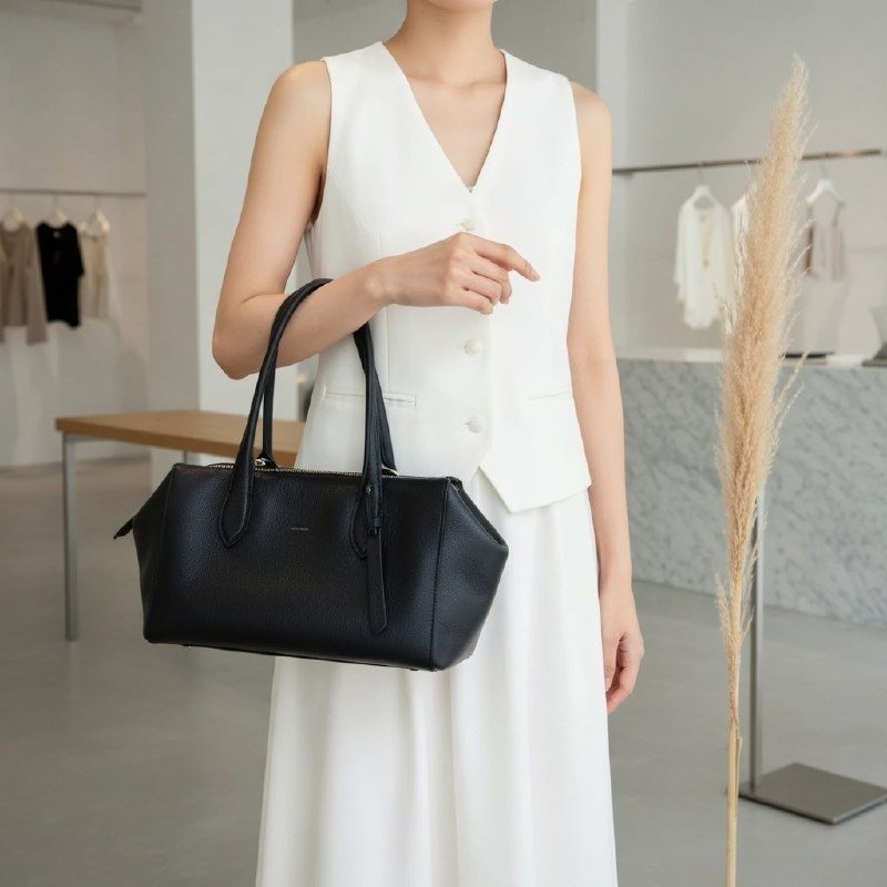 MTB-01BK MILESA BLACK HIGH QUALITY LEATHER SHOULDER TOTE BAG