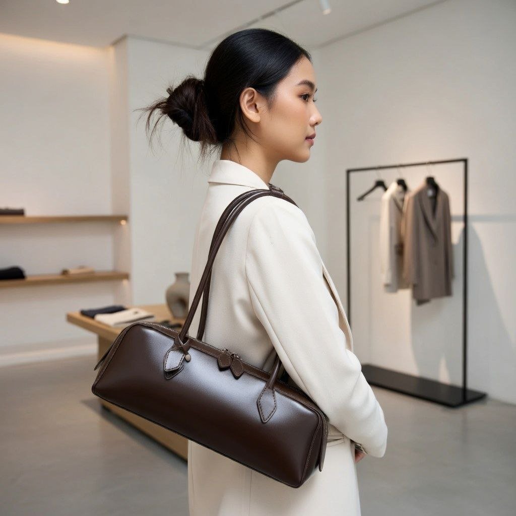 MTB-05DB FARANSA DARK BROWN HIGH QUALITY LEATHER SHOULDER TOTE BAG
