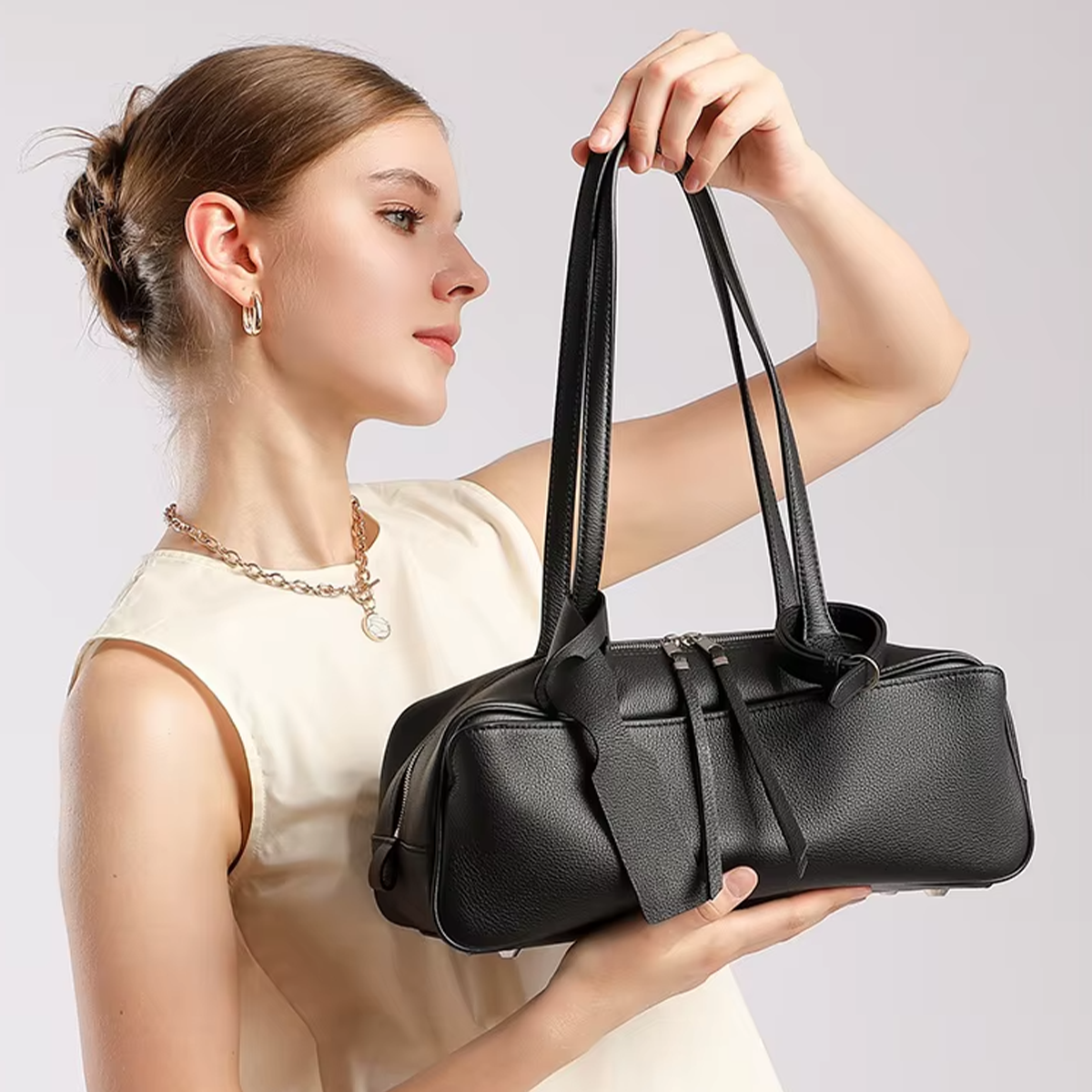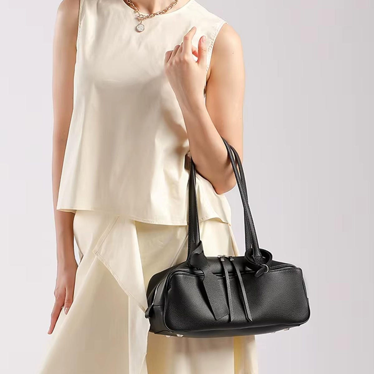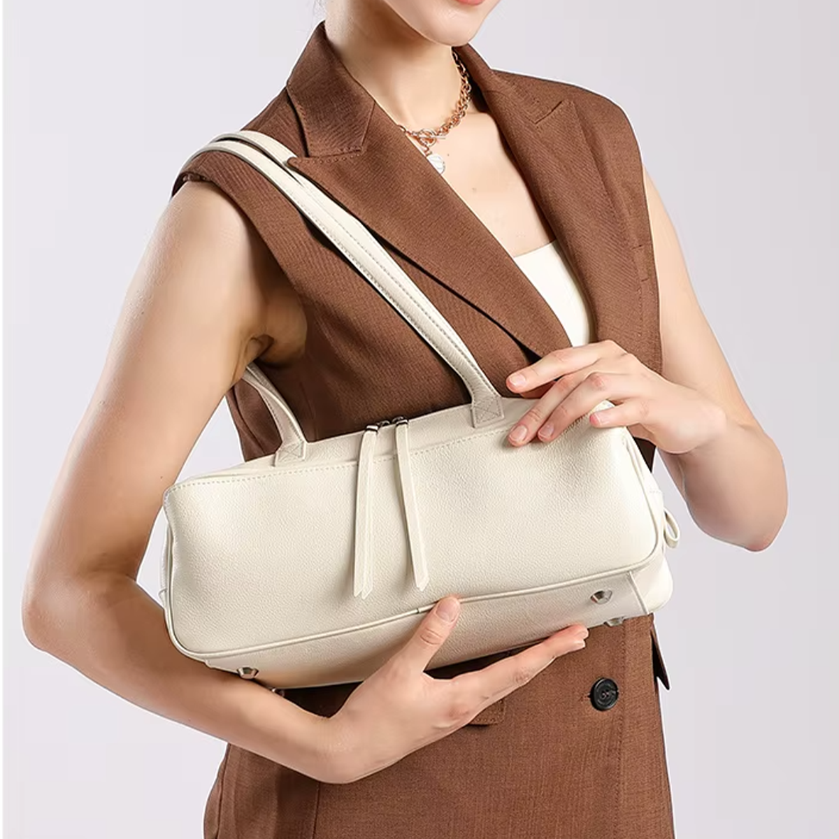 MTB-06WB ATLA WHITE BEIGE HIGH QUALITY LEATHER SHOULDER TOTE BAG